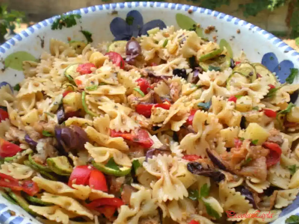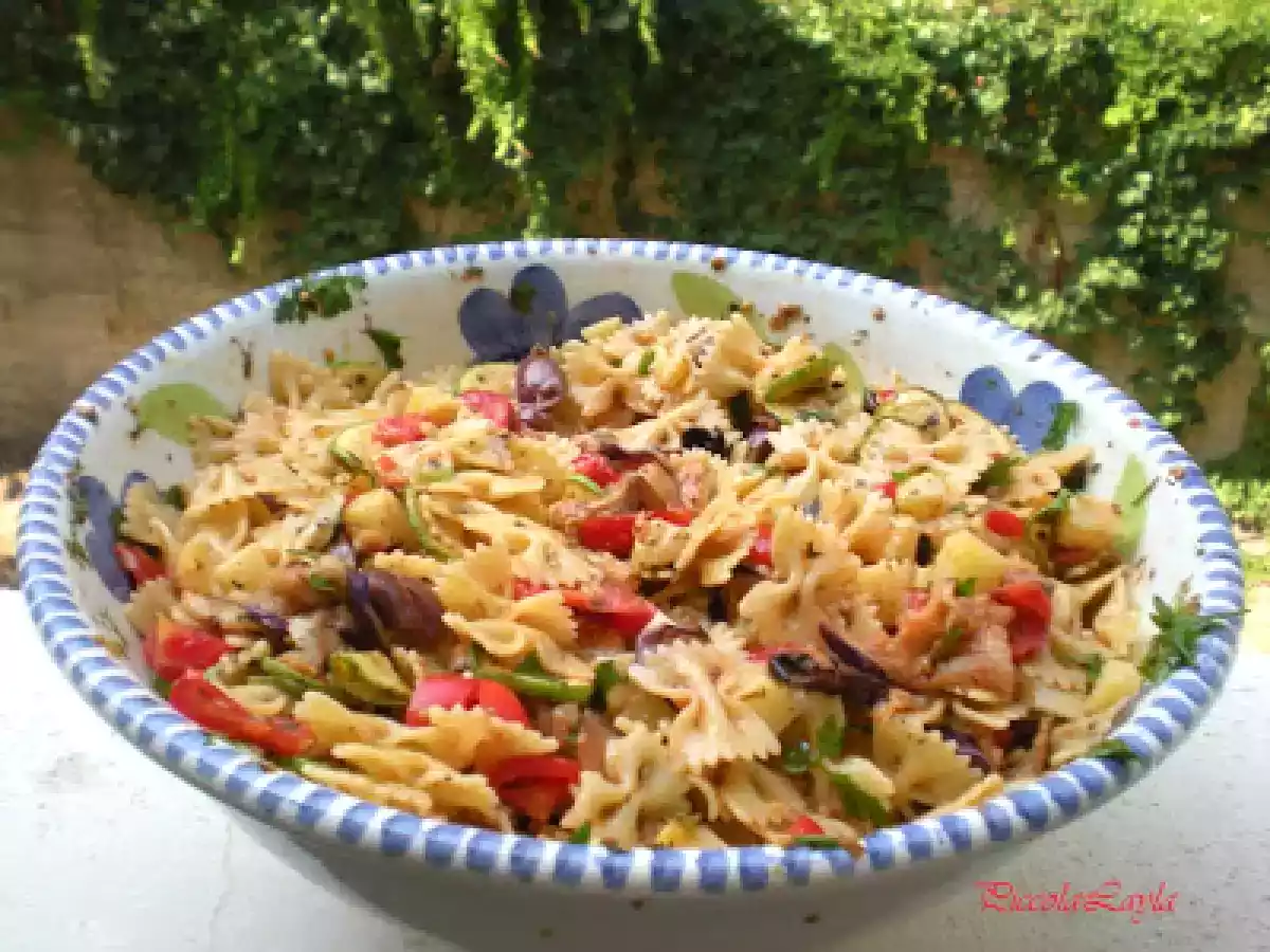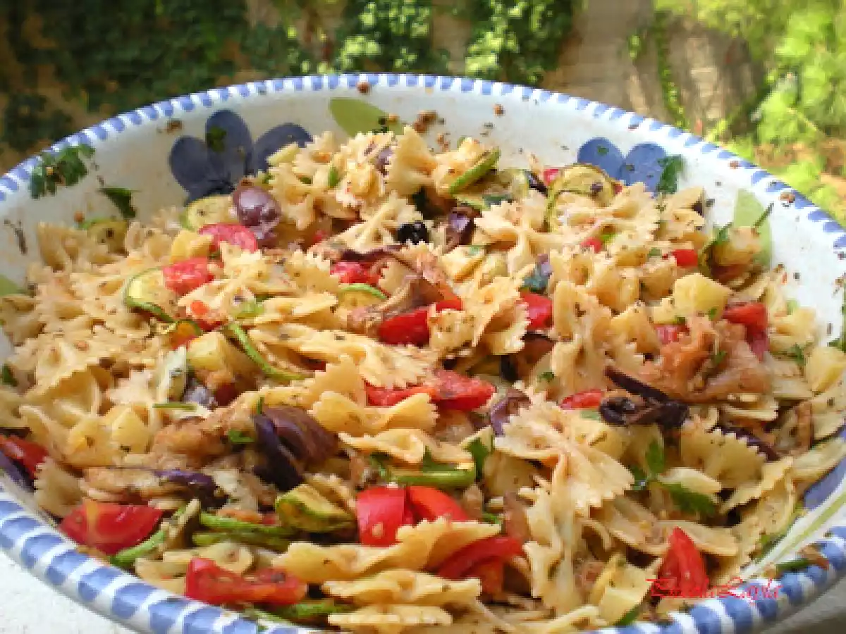 Insalata di pasta con verdure grigliate PrecedenteProssimo Portata principalefacile30 min Invia questa ricetta ad un amico Stampa la ricetta Contatta l'autore della Ricetta Pubblica la foto di questa ricetta Concedetevi con questo piccolo appartamento in fretta vi innamorerete. Ingredienti 10 400 g di pasta corta 4 zucchine piccole 2 melanzane piccole 20 pomodorini pachino 300 g di hemmental 20 olive nere 3 spicchi d aglio 1 mazzo di prezzemolo 1 cucchiaio di origano 1 cucchiaio di pepe nero olio evo abbondante peperoncino rosso a piacere sale