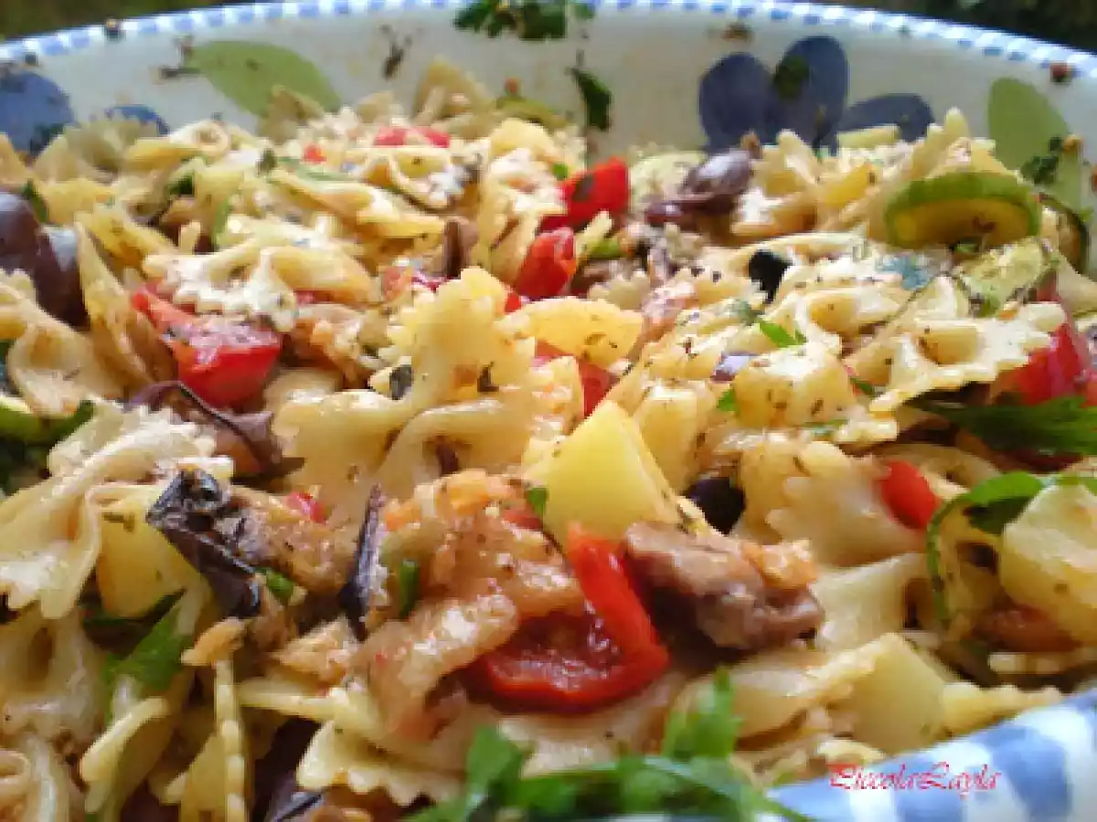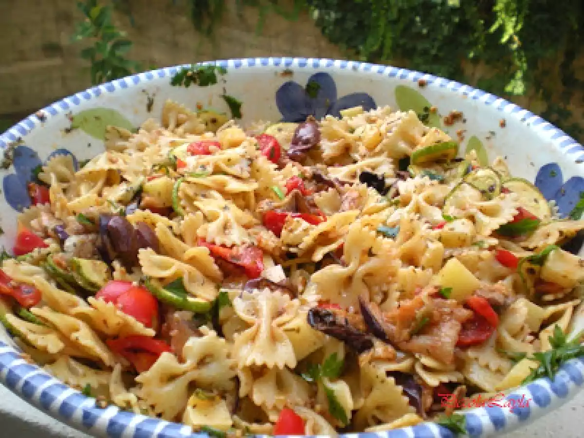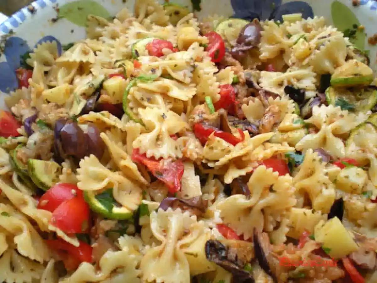 Insalata di pasta con verdure grigliate PrecedenteProssimo Portata principalefacile30 min Invia questa ricetta ad un amico Stampa la ricetta Contatta l'autore della Ricetta Pubblica la foto di questa ricetta Concedetevi con questo piccolo appartamento in fretta vi innamorerete. Ingredienti 10 400 g di pasta corta 4 zucchine piccole 2 melanzane piccole 20 pomodorini pachino 300 g di hemmental 20 olive nere 3 spicchi d aglio 1 mazzo di prezzemolo 1 cucchiaio di origano 1 cucchiaio di pepe nero olio evo abbondante peperoncino rosso a piacere sale
