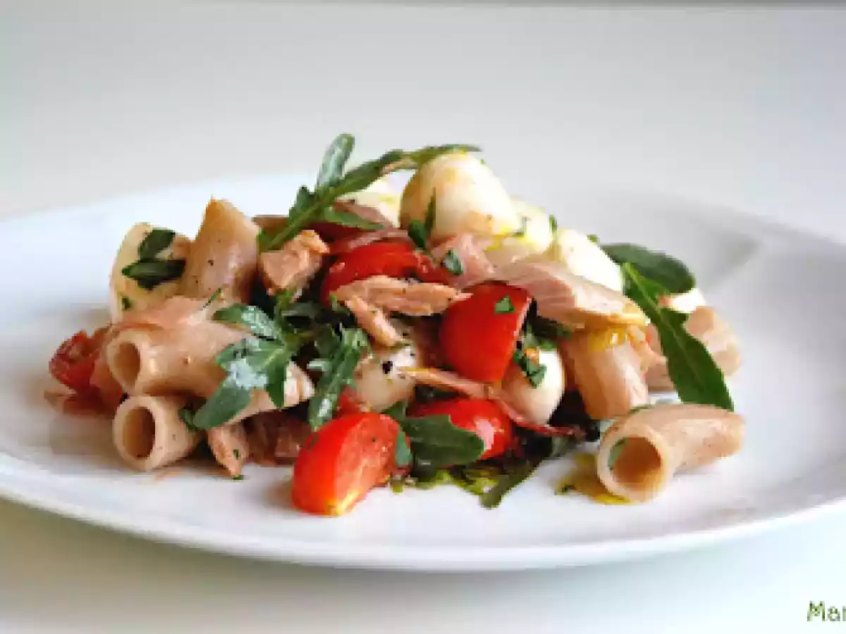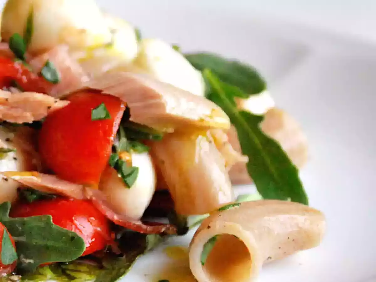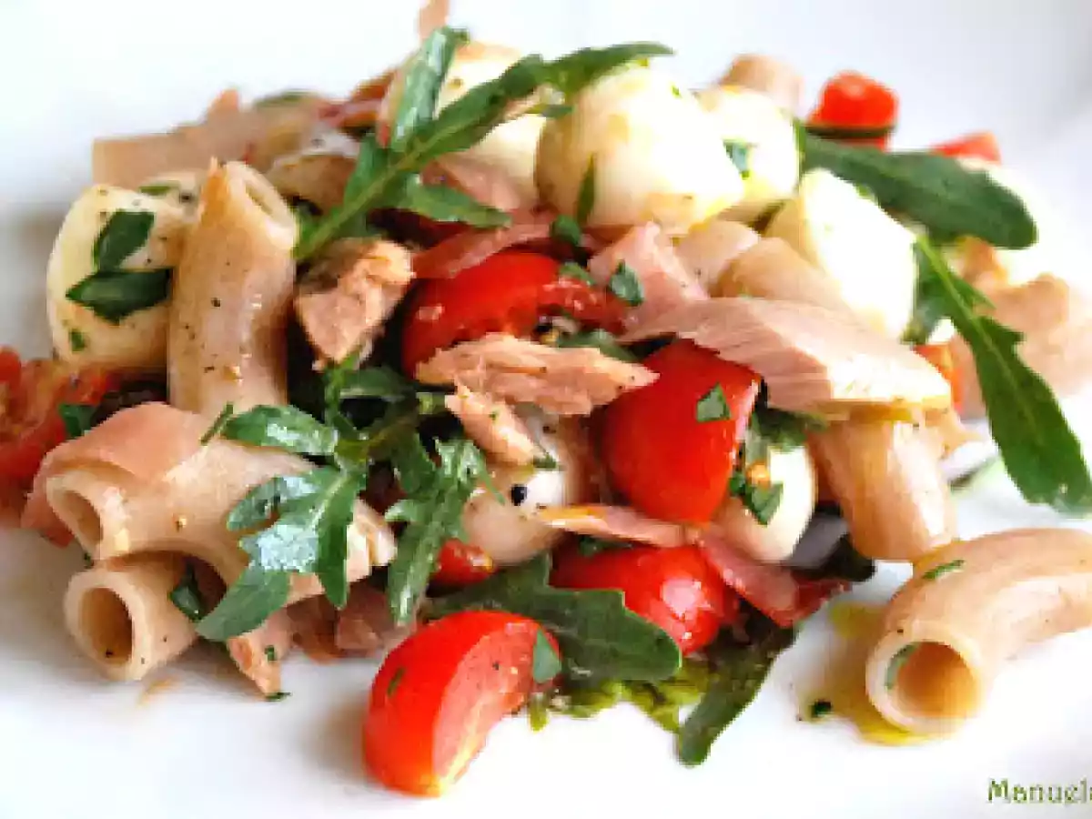 Insalata di pasta al farro PrecedenteProssimo Portata principalefacile50 min Invia questa ricetta ad un amico Stampa la ricetta Contatta l'autore della Ricetta Pubblica la foto di questa ricetta Un'ottima idea estiva da preparare con la pasta al farro Ingredienti 2 maccheroncini di farro pomodorini rucola basilico tonno a filetti speck mozzarelline olio e.v.o. sale pepe