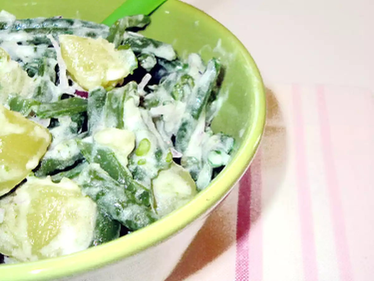 Insalata di patate e fagiolini alla certosa PrecedenteProssimo Portata principalefacile35 min Invia questa ricetta ad un amico Stampa la ricetta Contatta l'autore della Ricetta Pubblica la foto di questa ricetta Ingredienti 2 400 g di fagiolini 4 patate piccole 1 cipolla rossa 3 cucchiai di certosa 1 cucchiaino di aceto balsamico Olio, sale q.b.