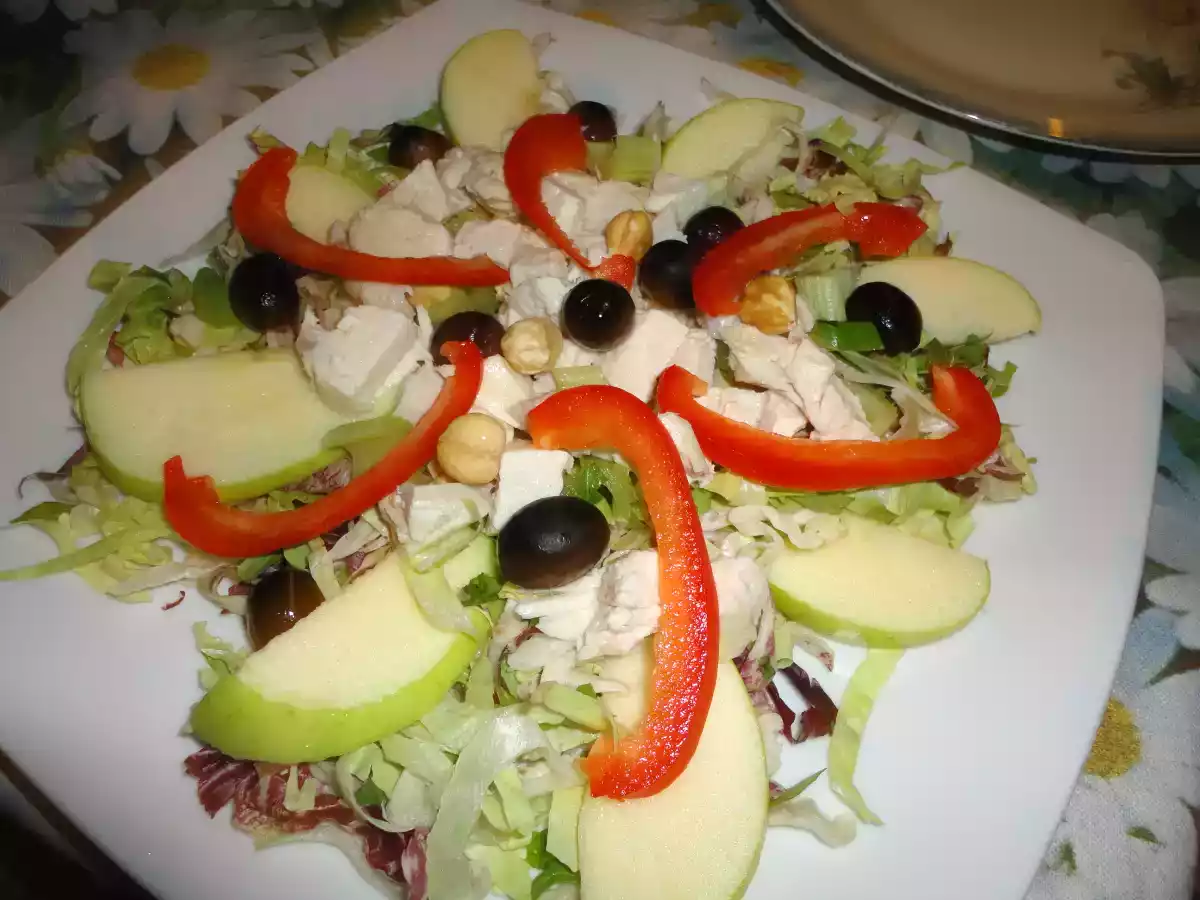 Insalata light fresca e croccante condita con salsa di yogurt e senape