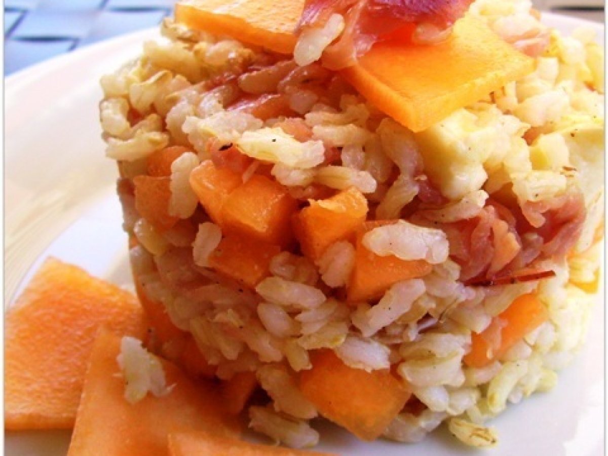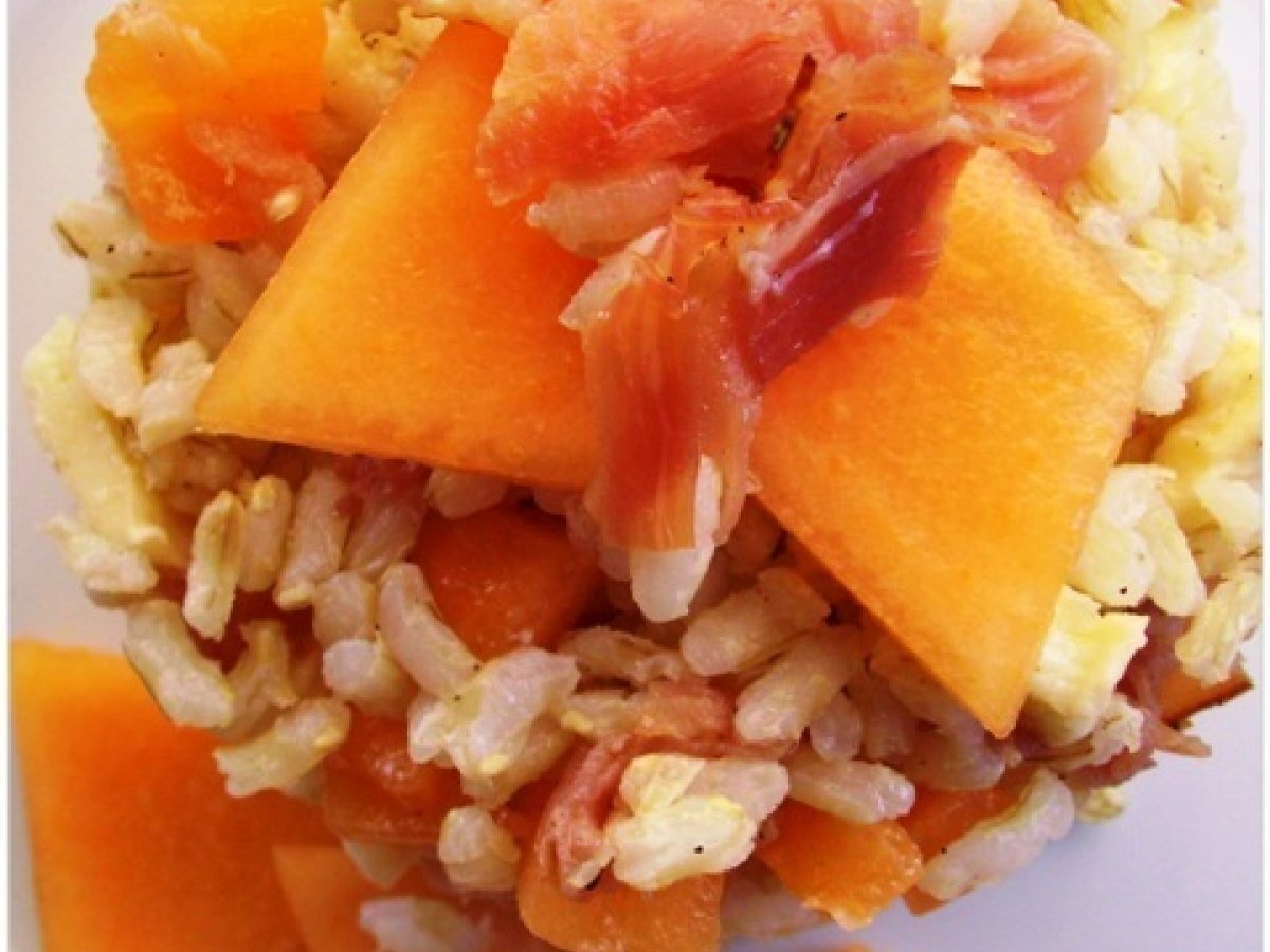 Insalata di riso integrale con melone e speck