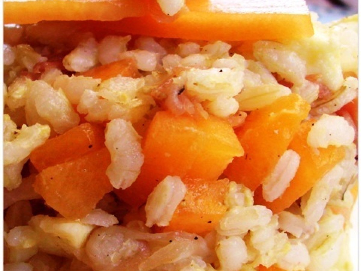 Il classico, melone e prosciutto, funziona anche nell'insalata di riso rendendola fresca e perticolare. Il melone che da un tocco estivo e vagamente dolcino al riso, ma ben bilanciato dallo speck che ha un gusto bello deciso. Io l'ho preferito al prosciutto cotto, ma anche a quello crudo, con lo speck il piatto è perfetto!