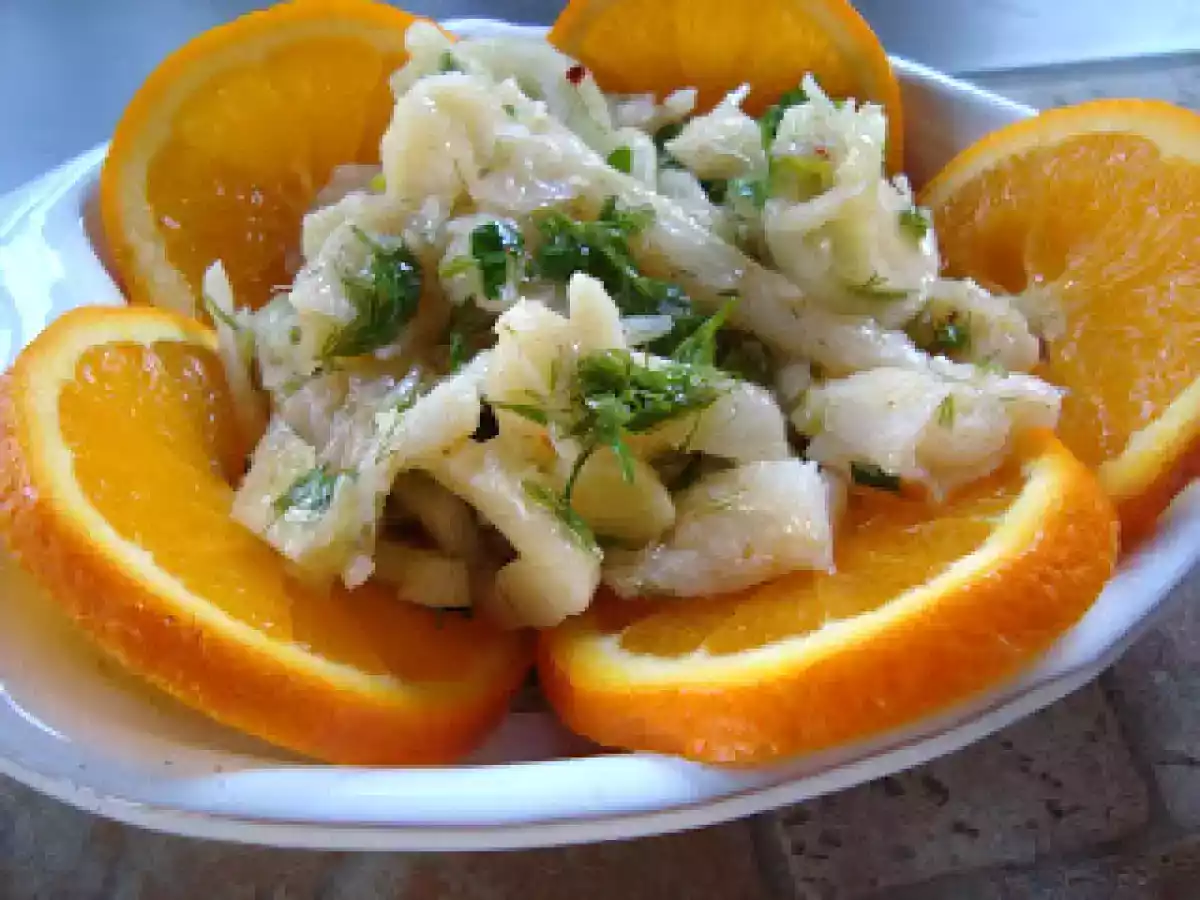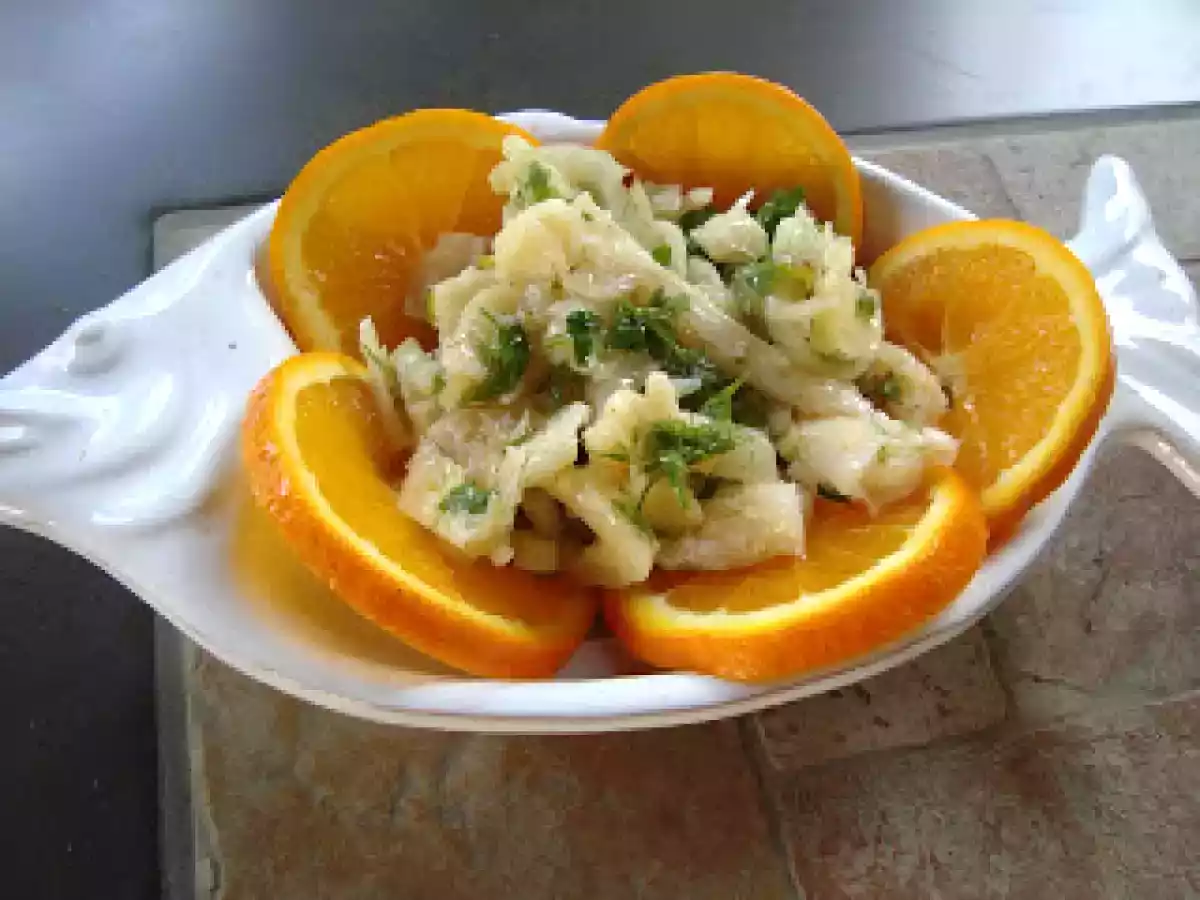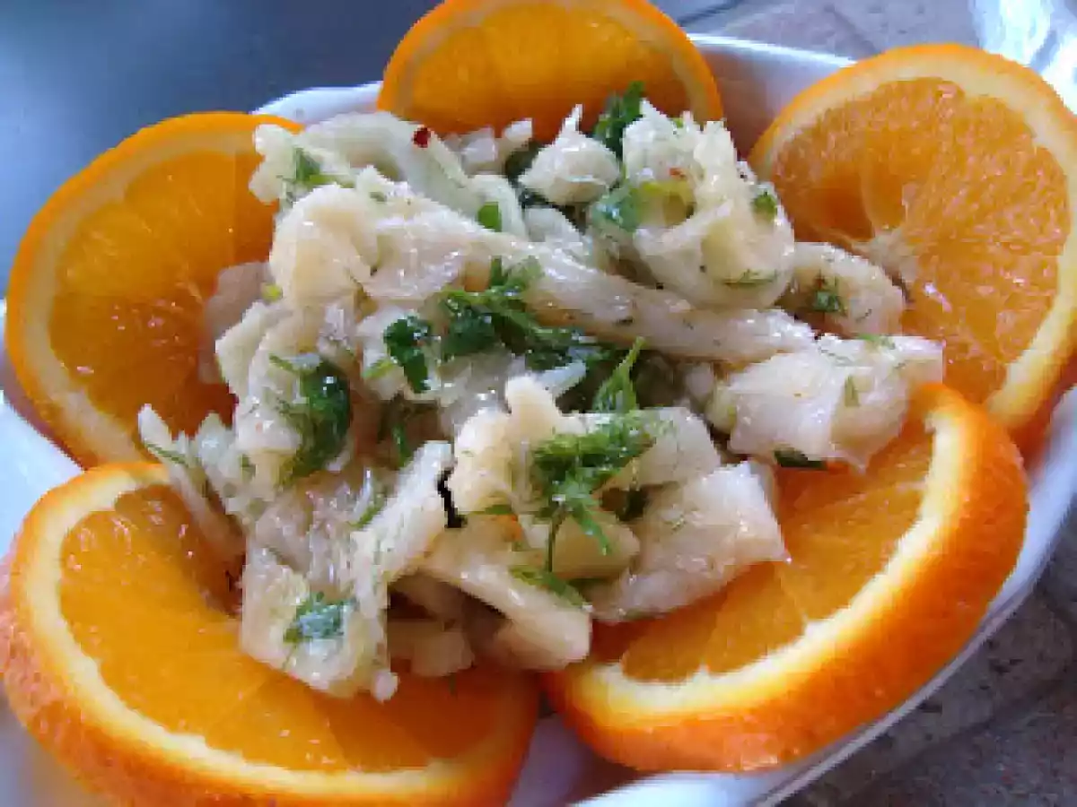 Insalata di stoccafisso agli agrumi PrecedenteProssimo Portata principalefacile35 min Invia questa ricetta ad un amico Stampa la ricetta Contatta l'autore della Ricetta Pubblica la foto di questa ricetta Ingredienti 2 stoccafisso prezzemolo e aglio tritato sale e olio extravergine di oliva peperoncino rosso piccante succo di 1 limone e 1 arancio acqua e aceto