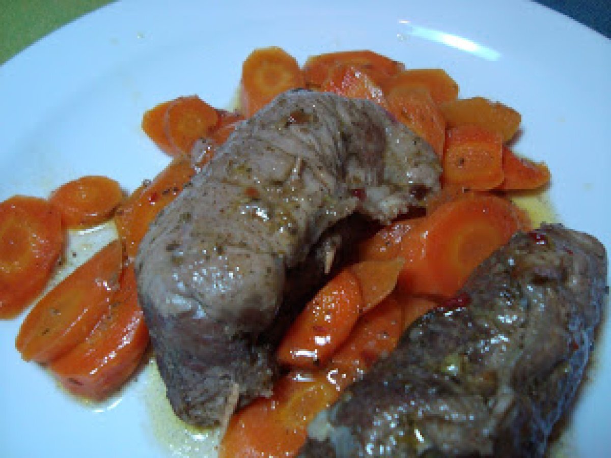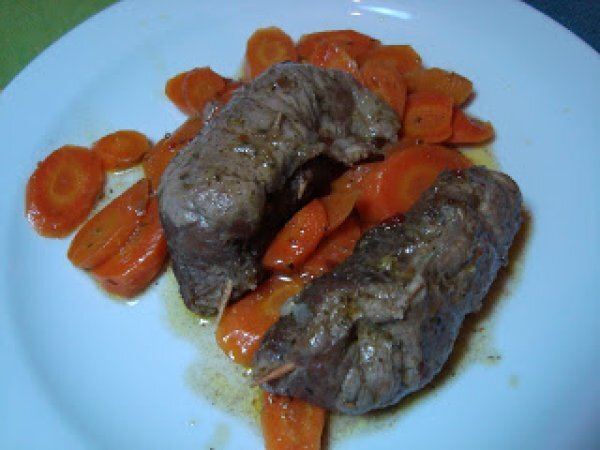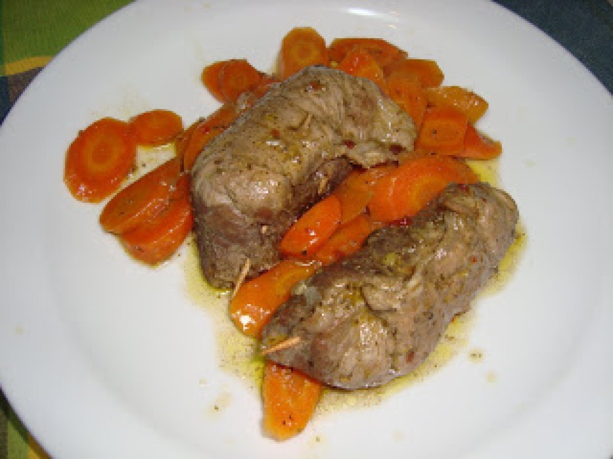 Involtini di carne con carote PrecedenteProssimo Portata principalefacile35 min653 Kcal Invia questa ricetta ad un amico Stampa la ricetta Contatta l'autore della Ricetta Pubblica la foto di questa ricetta Ingredienti 1 fettine di girello di vitello mollica di pane fresco trito di prezzemolo aglio e olio parmigiano grattugiato vino bianco cipolla tritata carote o altra verdura Costo stimato: 3.26Euros€ (3.26€/Porzioni)