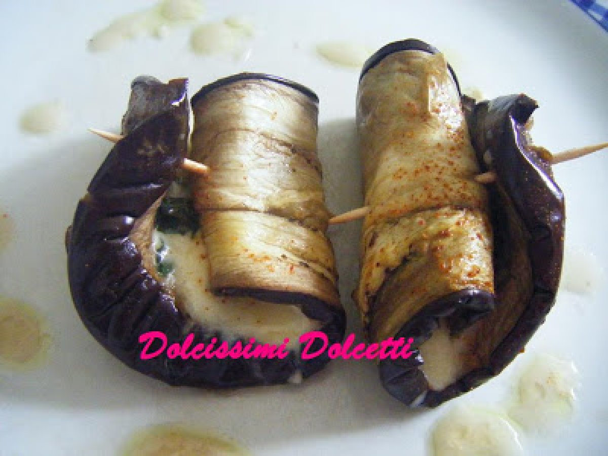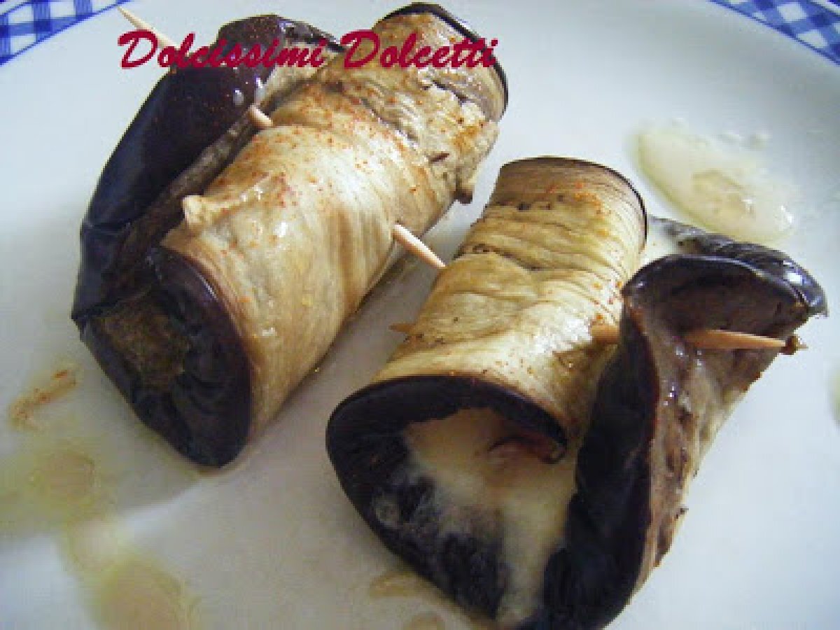 Involtini di melanzana leggeri PrecedenteProssimo Portata principalefacile50 min Invia questa ricetta ad un amico Stampa la ricetta Contatta l'autore della Ricetta Pubblica la foto di questa ricetta Ingredienti 4 2 grosse melanzane 2 mozzarelle foglie di basilico fili di erba cipollina olio d'oliva sale peperoncino