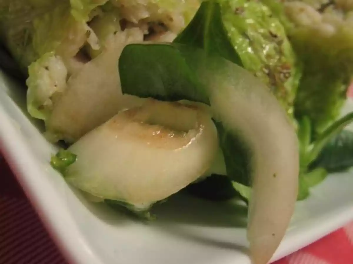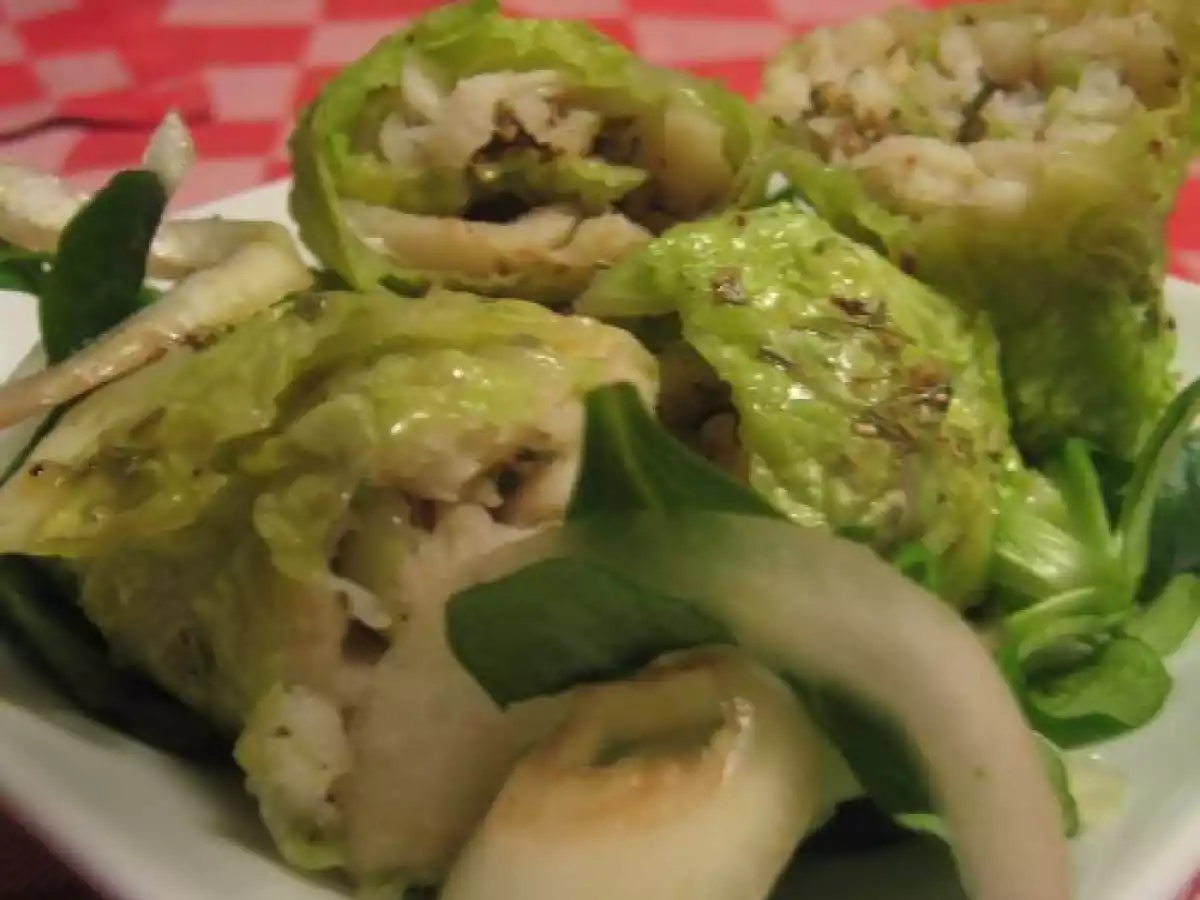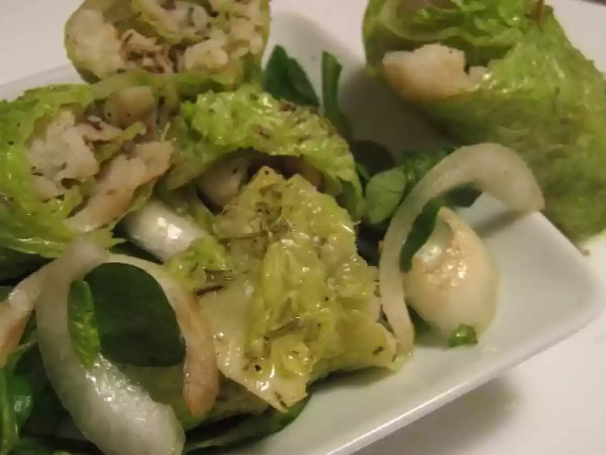 Involtini di merluzzo con olio aromatizzato alle noci e pistacchi secondo ?dolcipensieri? vota adesso PrecedenteProssimo Portata principalefacile50 min Invia questa ricetta ad un amico Stampa la ricetta Contatta l'autore della Ricetta Pubblica la foto di questa ricetta Ingredienti 6 12 filetti di merluzzo 12 foglie di verza 1/2 cipolla bianca 125 g di soncino 1/2 spicchio di aglio 1 cucchiaio di pistacchi 3 cucchiai di gherigli di noce 1 cucchiaio di rosmarino essicato olio extravergine d’oliva aceto balsamico sale rosa pepe nero e bianco macinato fresco.