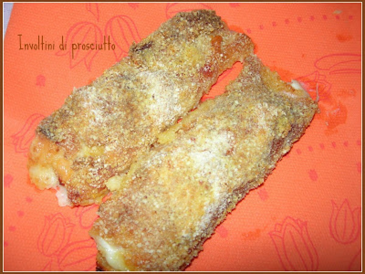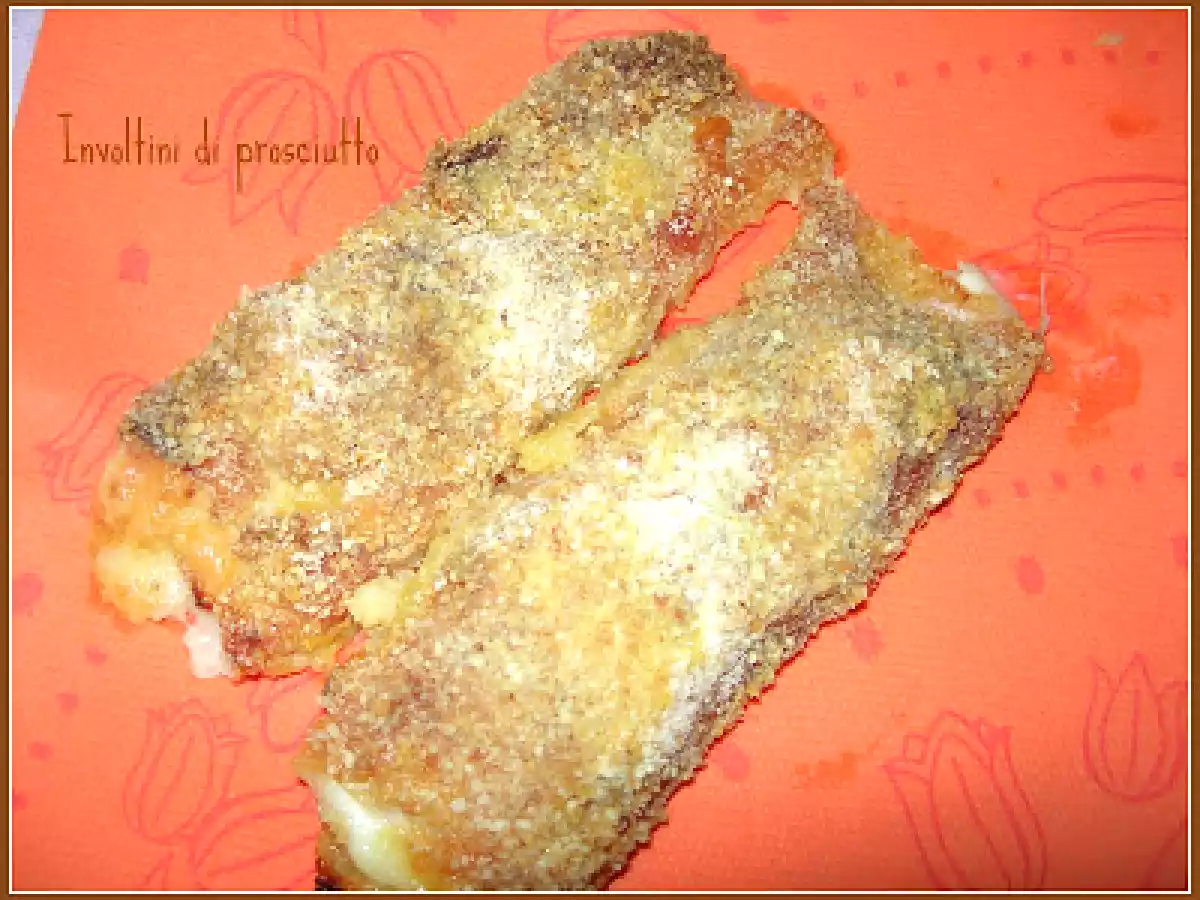 Involtini di prosciutto cotto al forno Portata principalefacile25 min662 Kcal Invia questa ricetta ad un amico Stampa la ricetta Contatta l'autore della Ricetta Pubblica la foto di questa ricetta Ingredienti 1 fette di prosciutto cotto 1 mozzarella o sottiletta 1 uovo pangrattato Costo stimato: 2.03Euros€ (2.03€/Porzioni)