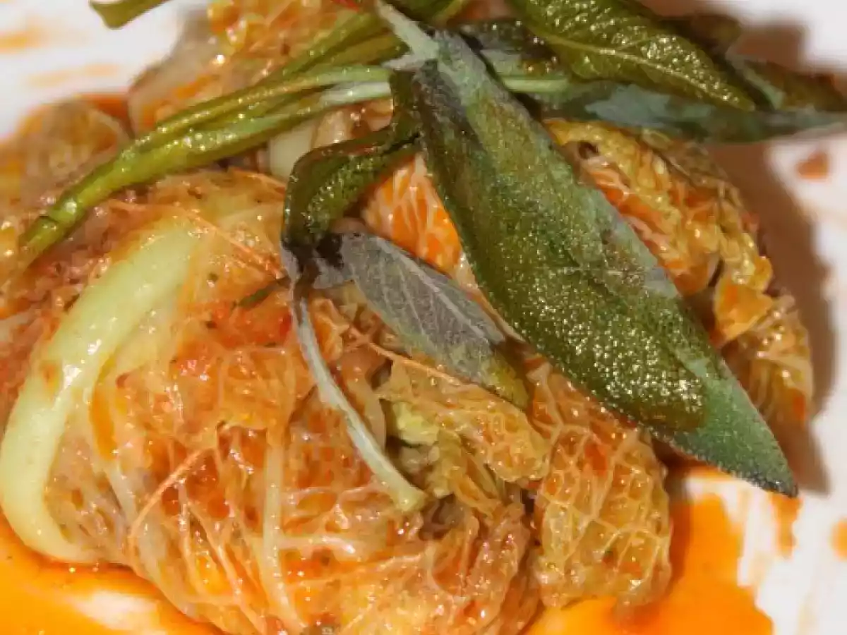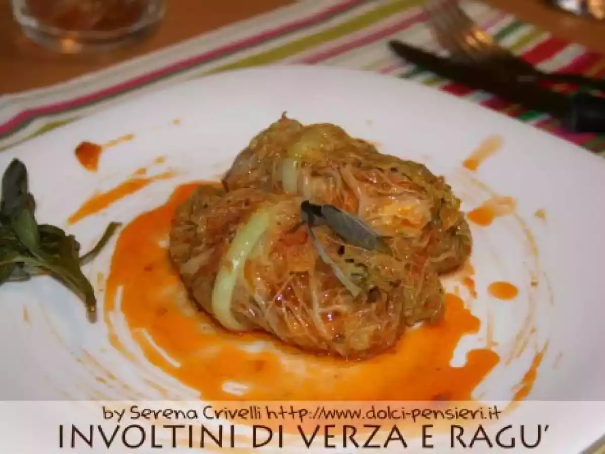 Involtini di verza e ragu? secondo vota adesso PrecedenteProssimo Portata principalefacile50 min Invia questa ricetta ad un amico Stampa la ricetta Contatta l'autore della Ricetta Pubblica la foto di questa ricetta Ingredienti 2 8 foglie di verza 2 pugni di trita per sugo 1 mozzarella 60 grammi di inbriago passata di pomodoro q.b. 1/2 cipolla prezzemolo tritato salvia olio extravergine d’oliva sale e pepe