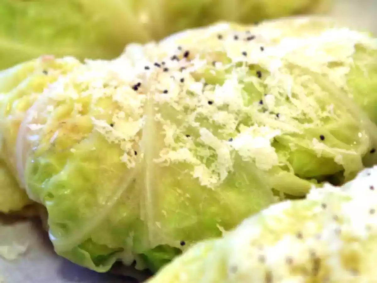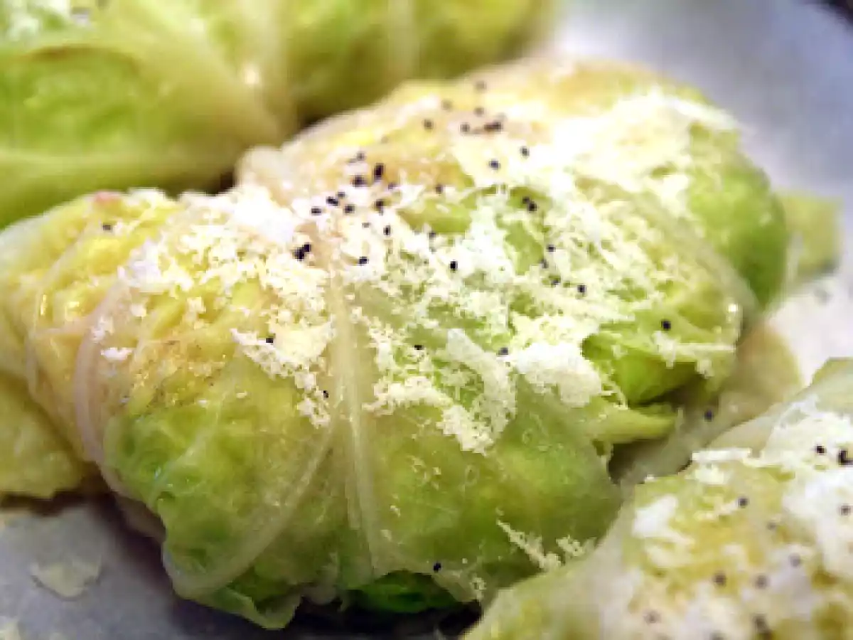 Involtini di verza + verza e fagioli! vota adesso PrecedenteProssimo Portata principalefacile45 min Invia questa ricetta ad un amico Stampa la ricetta Contatta l'autore della Ricetta Pubblica la foto di questa ricetta Ingredienti 2 2 foglie di verza per ogni involtino Purè Prosciutto cotto : 4 fette Pepe nero Semi di coriandolo Parmigiano grattugiato