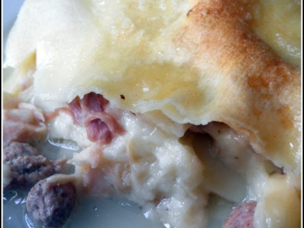 La lasagna bianca in brodo di angelina Portata principalefacile1 h 15 m Invia questa ricetta ad un amico Stampa la ricetta Contatta l'autore della Ricetta Pubblica la foto di questa ricetta Ingredienti 12 Per la sfoglia: 3 uova 400 g c.ca di farina di semola di grano duro un pizzico di sale acqua q.b. Per il ripieno: 1200 g di gallina 500 g di macinato magro 2 uova fresche noce moscata sale, pepe prezzemolo 3 scamorze di fiordilatte oppure mozzarelle fiordilatte di ottima qualità. 500 g di parmigiano grattuggiato Per il brodo. la gallina di cui sopra una cipolla un ciuffetto di prezzemolo sale q.b.
