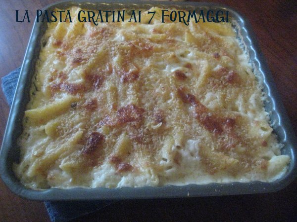 La pasta gratin ai 7 formaggi Portata principalemedia1 ora Invia questa ricetta ad un amico Stampa la ricetta Contatta l'autore della Ricetta Pubblica la foto di questa ricetta Ingredienti 4 350grammi circa di formaggio: feta, asiago, bastardo del grappa, pepato siciliano, scamorza affumicata, parmigiano, e emmenthal. 200ml panna fresca 400ml latte noce moscata, pepe 400grammi penne rigate 50grammi burro + un pò per ungere loa teglia + fiocchetti per gratinare 1 cucchiaio farina pangrattato