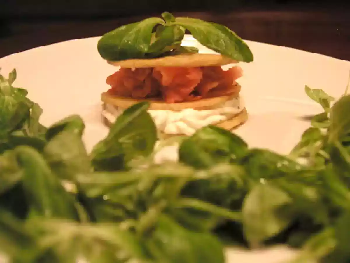 "lasagna" estiva di polenta, salmone e formaggio