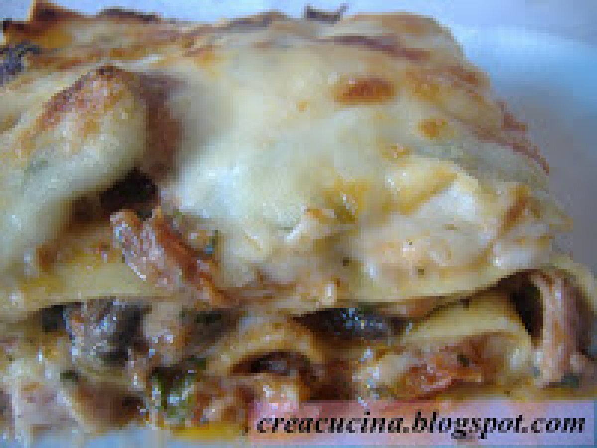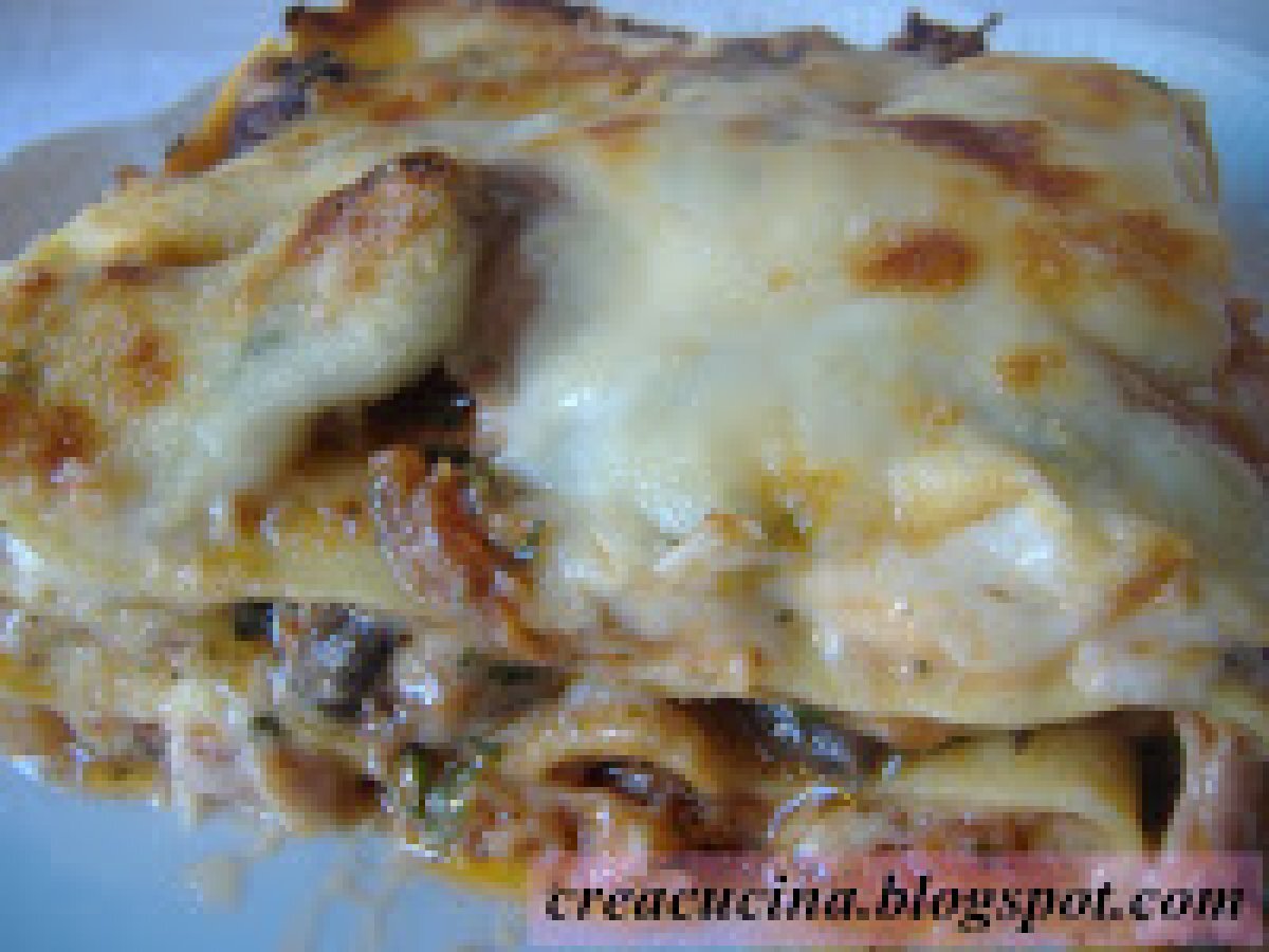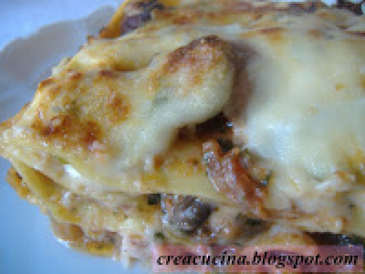 Lasagne al forno ai funghi e prosciutto PrecedenteProssimo Portata principalefacile55 min725 Kcal Invia questa ricetta ad un amico Stampa la ricetta Contatta l'autore della Ricetta Pubblica la foto di questa ricetta Ingredienti 5 una confezione di sfoglia rustica per lasagne 500 g di funghi champignon 400 g di passata di pomodoro 200 g di prosciutto cotto uno spicchio d'aglio prezzemolo tritato parmigiano grattugiato abbondante una noce di burro olio extra vergine di oliva sale e pepe per la besciamella 700 ml di latte 60 g di farina 70 g di burro sale e pepe 1 cucchiaio di parmigiano 1 cucchiaio di prezzemolo tritato