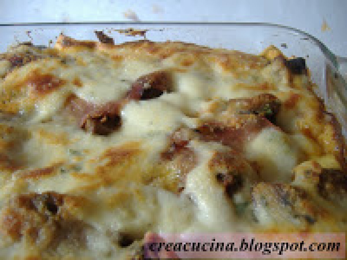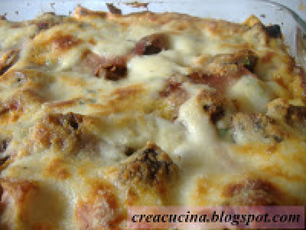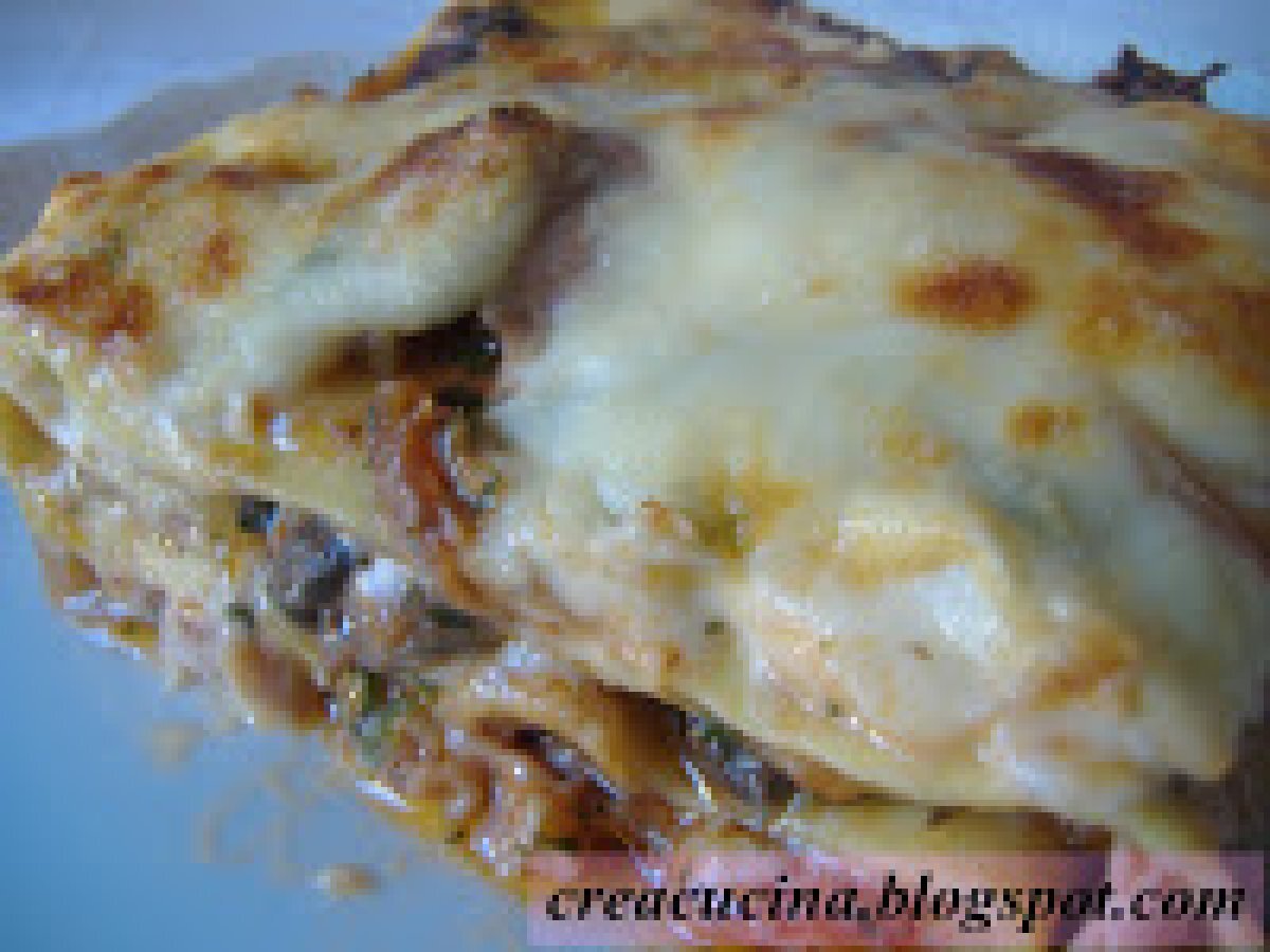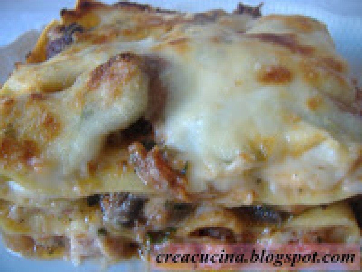 Lasagne al forno ai funghi e prosciutto PrecedenteProssimo Portata principalefacile55 min725 Kcal Invia questa ricetta ad un amico Stampa la ricetta Contatta l'autore della Ricetta Pubblica la foto di questa ricetta Ingredienti 5 una confezione di sfoglia rustica per lasagne 500 g di funghi champignon 400 g di passata di pomodoro 200 g di prosciutto cotto uno spicchio d'aglio prezzemolo tritato parmigiano grattugiato abbondante una noce di burro olio extra vergine di oliva sale e pepe per la besciamella 700 ml di latte 60 g di farina 70 g di burro sale e pepe 1 cucchiaio di parmigiano 1 cucchiaio di prezzemolo tritato