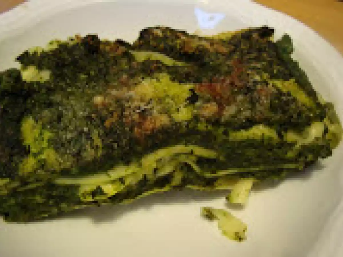 Lasagne al pesto di spinaci vota adesso PrecedenteProssimo Portata principalefacile55 min640 Kcal Invia questa ricetta ad un amico Stampa la ricetta Contatta l'autore della Ricetta Pubblica la foto di questa ricetta Ingredienti 4 450 g di spinaci surgelati 250 g ricotta 100 g parmigiano 1 mozzarella 1 bicchiere di latte sfoglia per lasagne Costo stimato: 6.99Euros€ (1.75€/Porzioni)