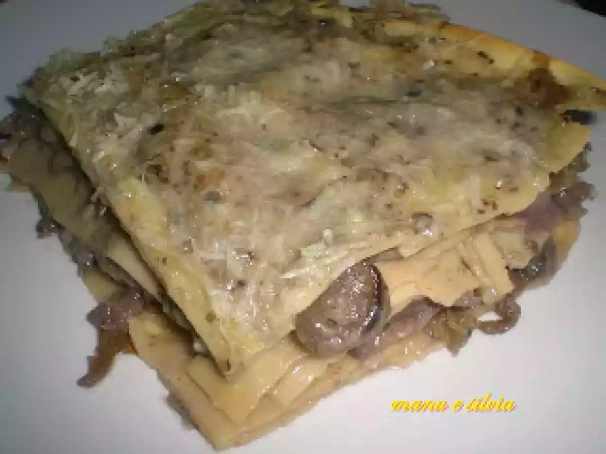 Lasagne alla verza in crema di funghi Portata principalefacile1 h 10 m496 Kcal Invia questa ricetta ad un amico Stampa la ricetta Contatta l'autore della Ricetta Pubblica la foto di questa ricetta Ingredienti 4 9 sfoglie all uovo per lasagne 1 cavolo verza 500 g funghi champignon 30 g farina 00 4 spicchi aglio 30 g margarina 35 g parmigiano grattugiato 350 ml latte vino rosso vino bianco olio evo noce moscata sale, pepe bianco Costo stimato: 8.69Euros€ (2.17€/Porzioni)