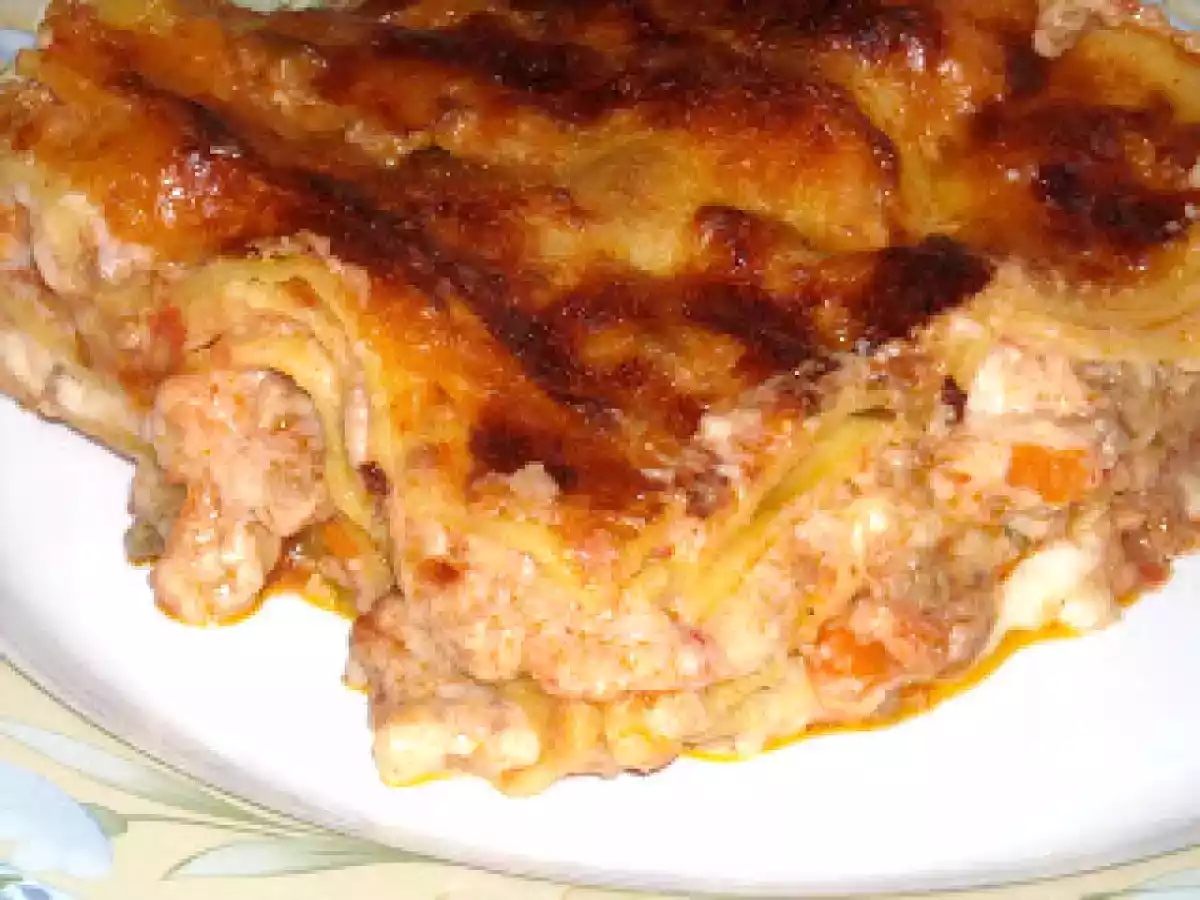 Lasagne con besciamella alla caciotta PrecedenteProssimo Portata principalefacile45 min Invia questa ricetta ad un amico Stampa la ricetta Contatta l'autore della Ricetta Pubblica la foto di questa ricetta Ingredienti 4 ragù classico con i funghi besciamella 200 g di caciotta fresca fogli di lasagne 80 g di grana grattuggiato 50 g di burro olio extravergine d'oliva