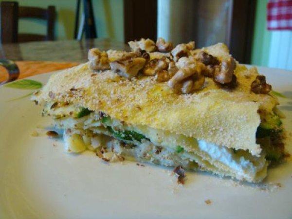 Lasagne con caprino, zucchine e noci