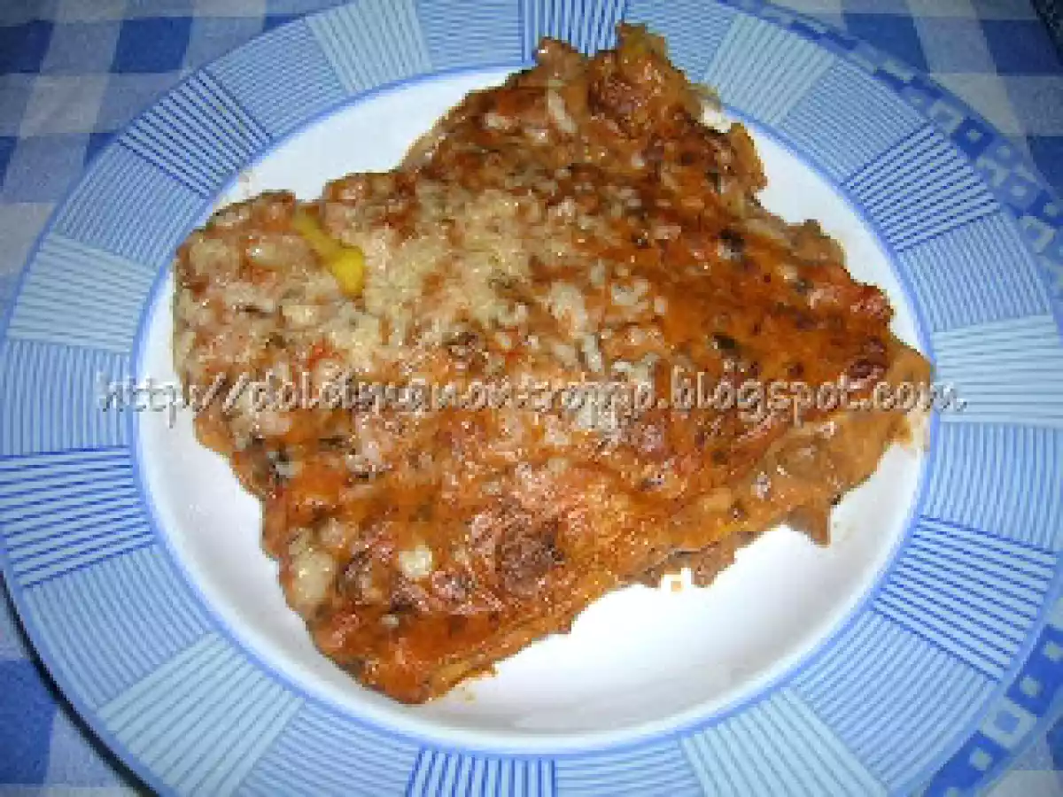 Lasagne gratinate con ragu' ai funghi Portata principalefacile30 min Invia questa ricetta ad un amico Stampa la ricetta Contatta l'autore della Ricetta Pubblica la foto di questa ricetta Ingredienti 3 375 g di lasagne 250 g di funghi misti surgelati 250 g di trita 250 g di mozzarella 750 ml. di besciamella 100 g di grana grattuggiato 1 carota 1 costa di sedano un bicchiere di vino rosso due cucchiai di olio extra vergine di oliva Nocellara 1 concentrato di pomodoro Mutti sale e pepe