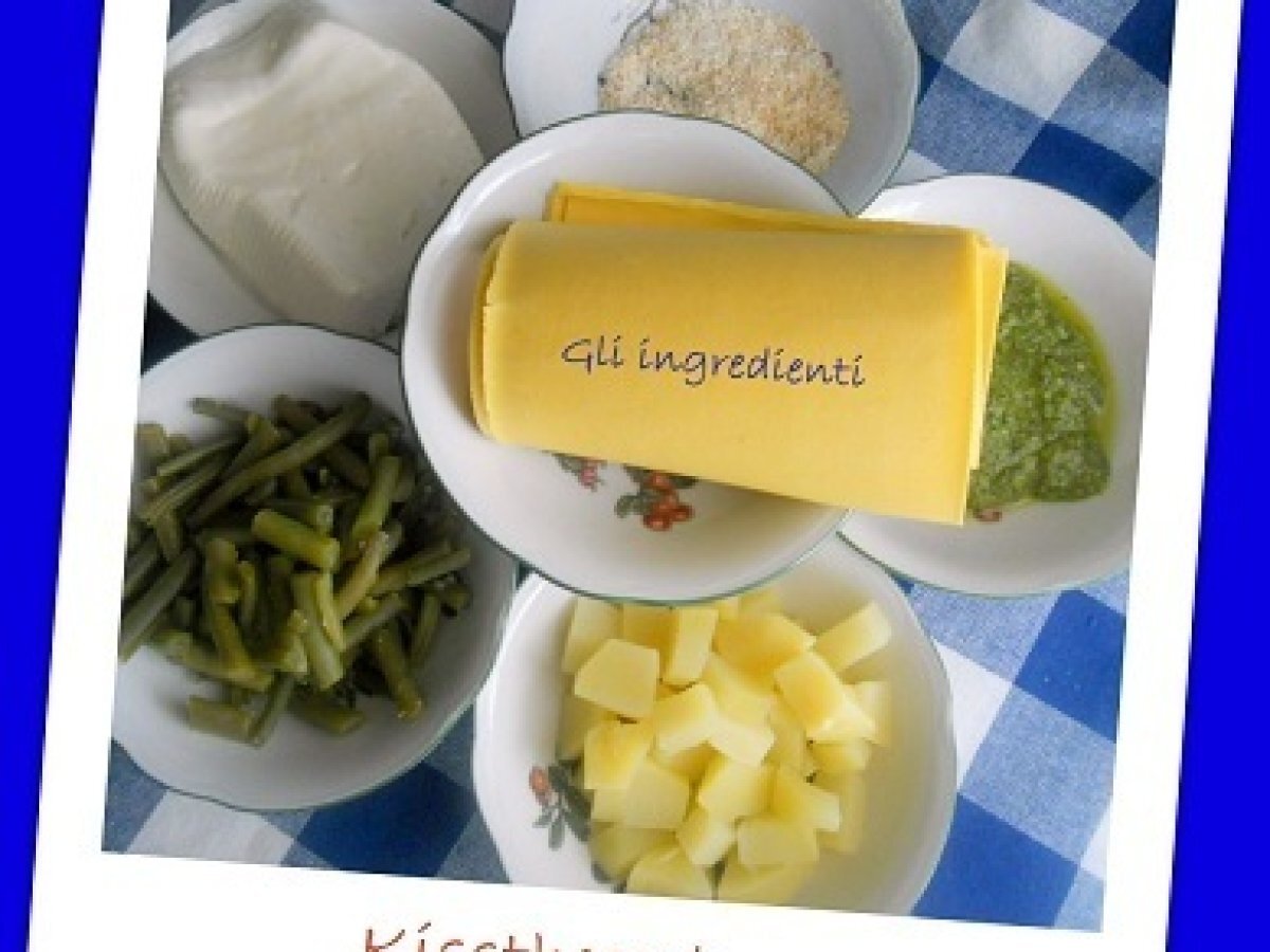 Lasagne vegetariane con pesto, fagiolini, patate e stracchino Portata principalemedia1 ora694 Kcal Invia questa ricetta ad un amico Stampa la ricetta Contatta l'autore della Ricetta Pubblica la foto di questa ricetta Ingredienti 4 Ingredienti per 4/5 porzioni: 250 g di pasta fresca per lasagne 250 g di stracchino 400 g di fagiolini peso da crudi 250 g di patate peso da crude 2 cucchiai di parmigiano olio sale . Per il pesto: un mazzetto di basilico (50 foglie ca.) 4/5 cucchiai di pinoli 4/5 cucchiai di parmigiano/pecorino sale olio.
