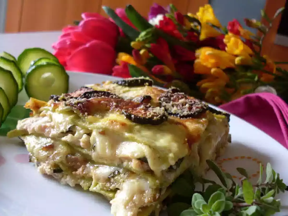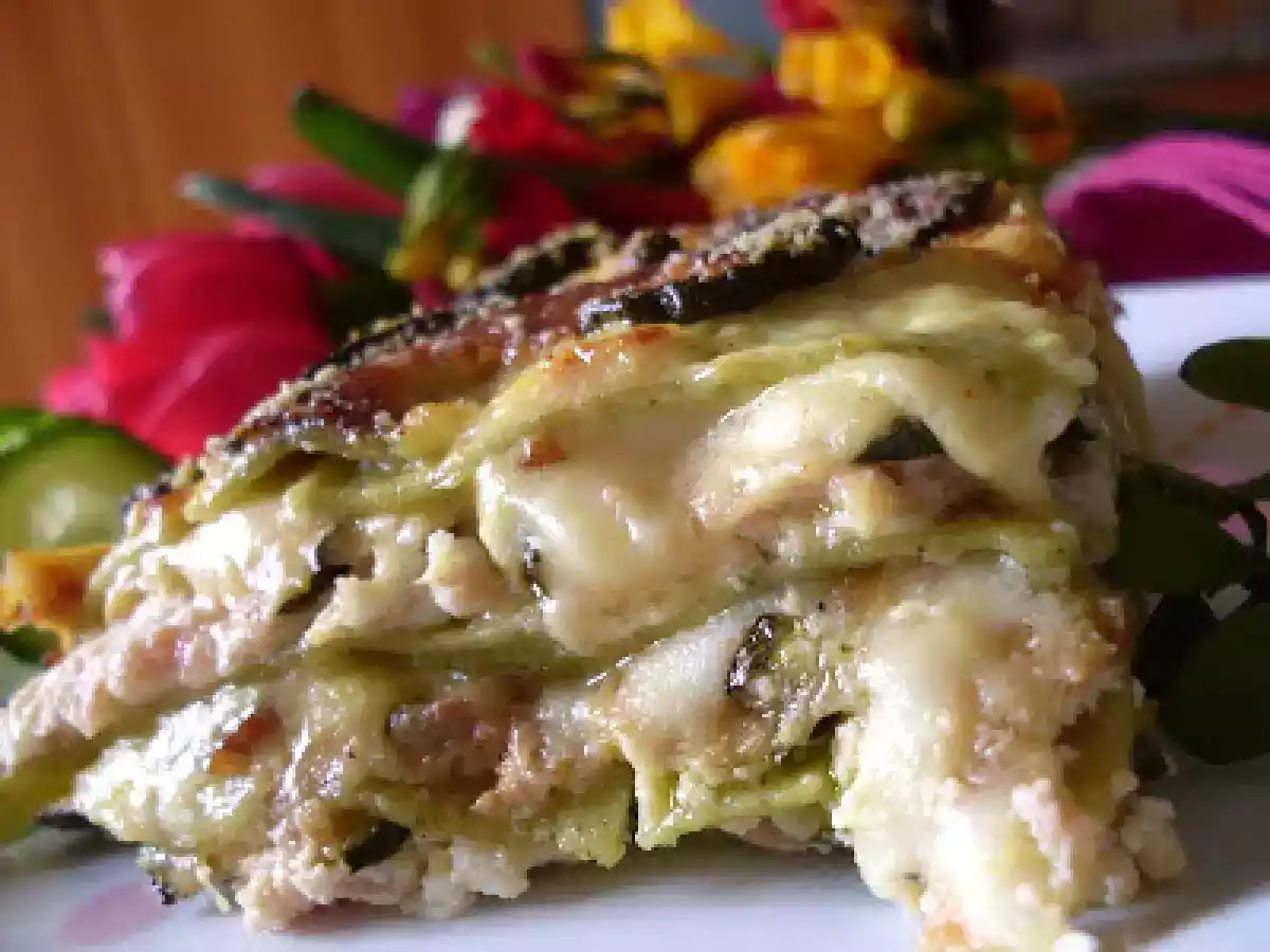 Lasagne verdi alle zucchine e zafferano... PrecedenteProssimo Portata principalefacile50 min656 Kcal Invia questa ricetta ad un amico Stampa la ricetta Contatta l'autore della Ricetta Pubblica la foto di questa ricetta Ingredienti 2 1 confezione di lasagne verdi zucchine besciamella molto morbida mozzarella o provola asciutta prosciutto cotto affumicato ricotta fresca 2 bustine di zafferano parmigiano grattugiato burro