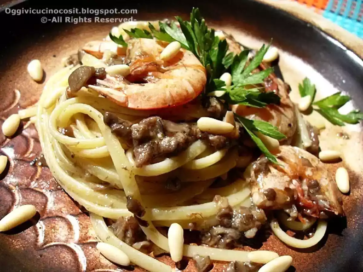 Linguine con mazzancolle e funghi porcini