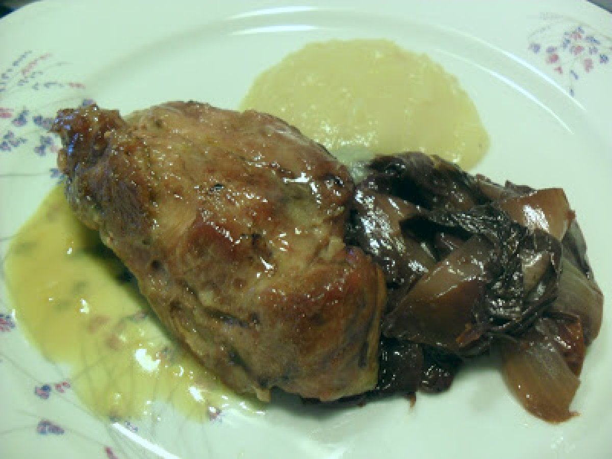 Maialino affumicato con salsa alla liquirizia, purè di mele e radicchio saltato Portata principalemedia2 h 20 m Invia questa ricetta ad un amico Stampa la ricetta Contatta l'autore della Ricetta Pubblica la foto di questa ricetta Ingredienti 4 Burro 1 confetto di liquirizia purissima 1 cucchiaio di maizena latte acqua sale zucchero di canna lecitina fondo di cottura del maialino