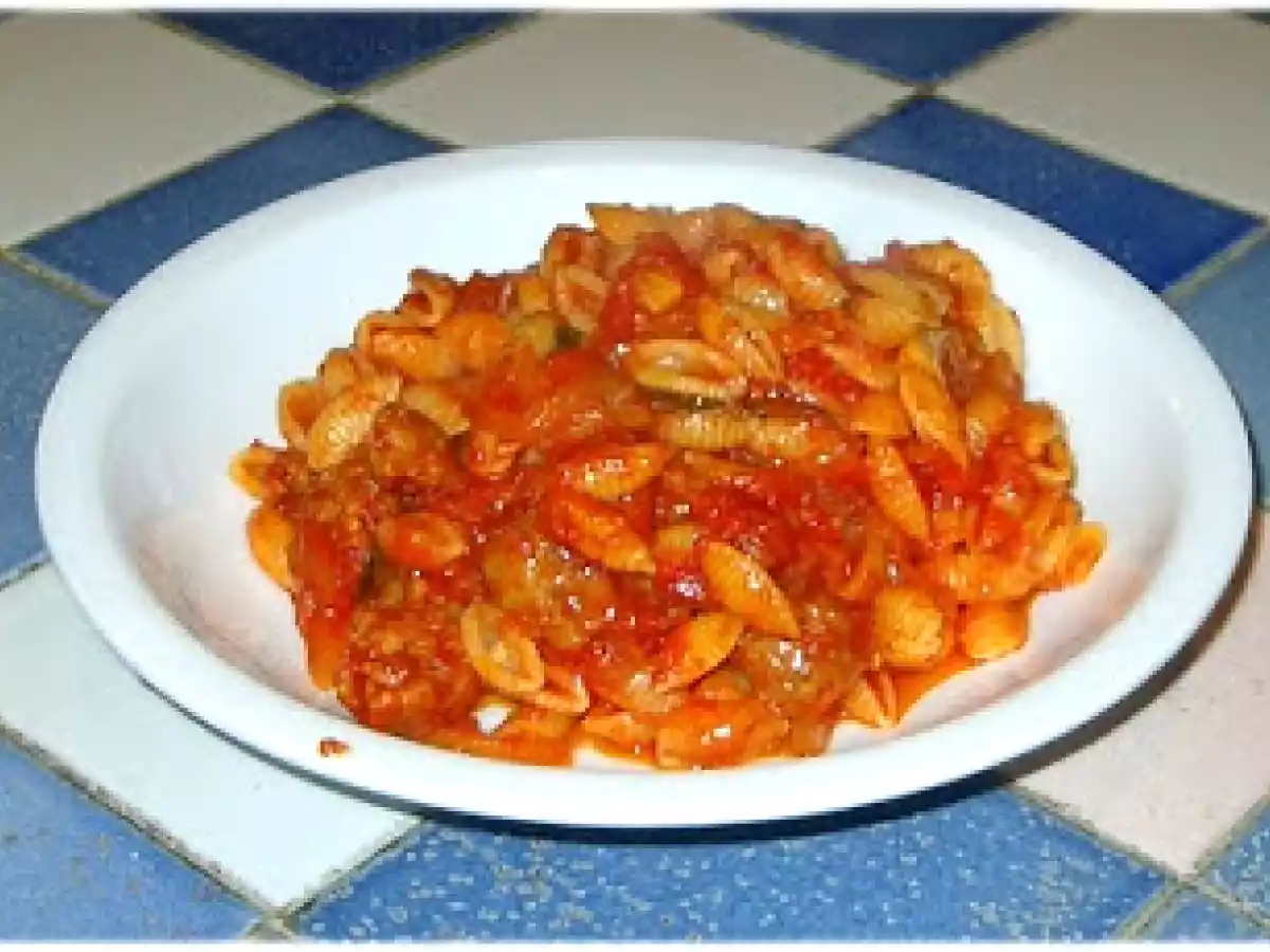- Regolare di sale e cuocere a fuoco moderato per 20 minuti. Rimettere la salsiccia in padella, e cuocere finché il sugo è ben denso.