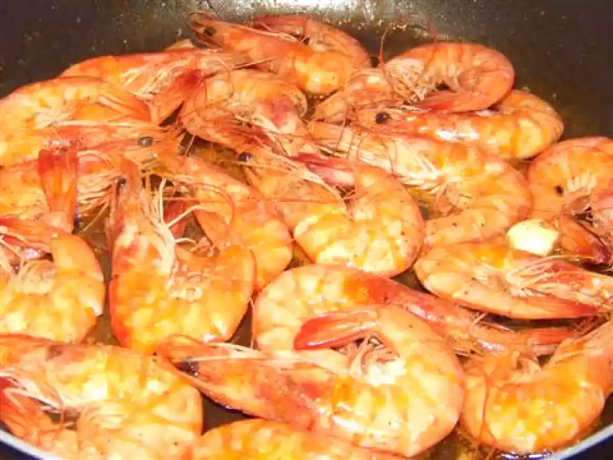 - Lavare e pulire bene le mazzancolle; mettere uno spicchio d’aglio a dorare con un filo d’olio in una padella, aggiungere le mazzancolle, salare e pepare.