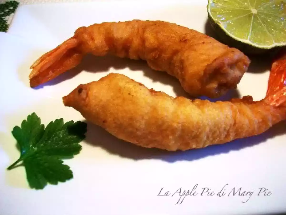 - Friggere le mazzancolle, poche alla volta per non far raffreddare l'olio, scolarle con un ragno e depositarle su due piatti con un doppio foglio di carta da cucina.