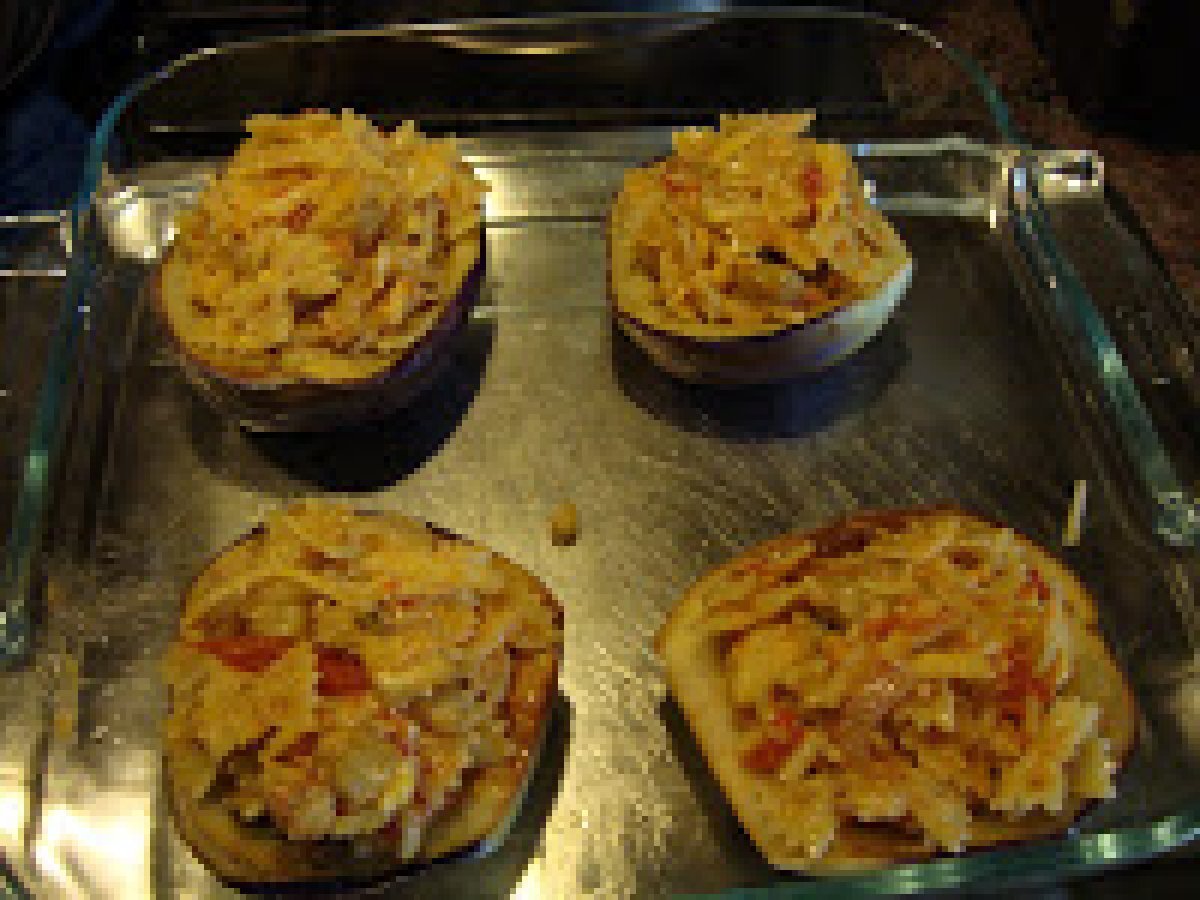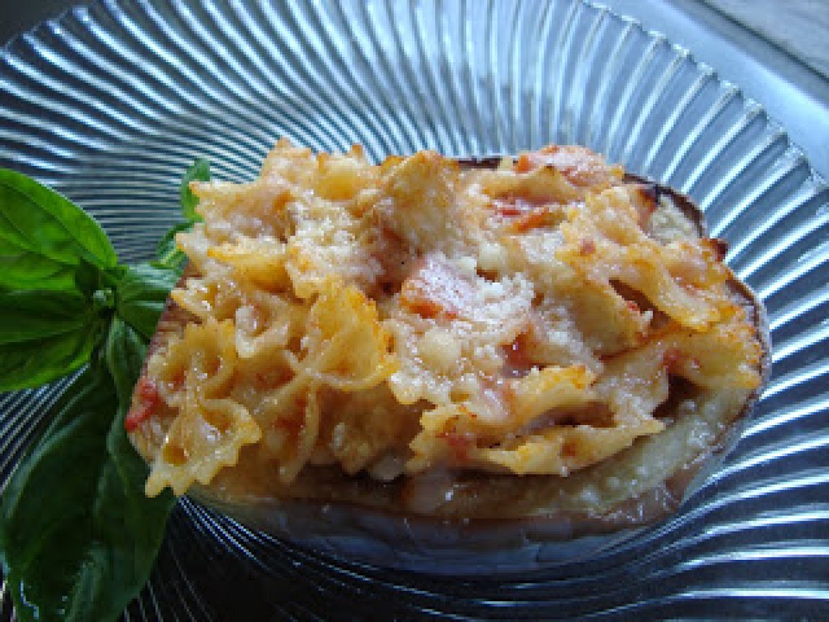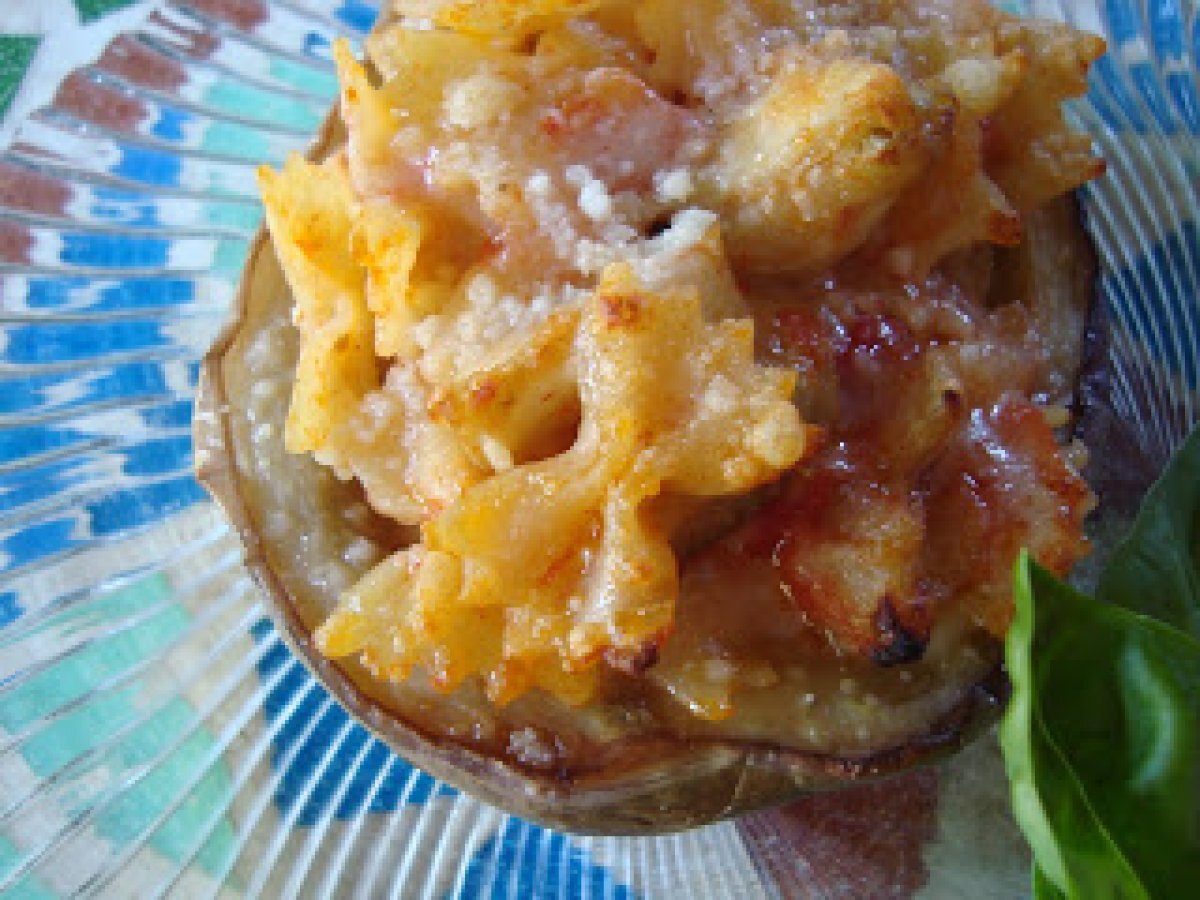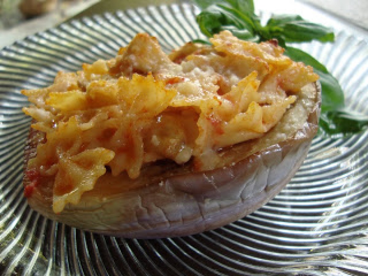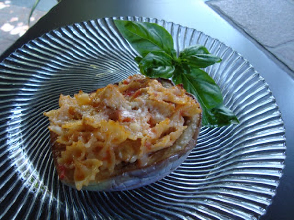 Melanzane a barchetta ripieni di pasta PrecedenteProssimo Portata principalefacile40 min Invia questa ricetta ad un amico Stampa la ricetta Contatta l'autore della Ricetta Pubblica la foto di questa ricetta Un modo diverso per preparare e servire la pasta con le melanzane. Ingredienti 2 1 melanzana grande Per le barchette 2 melanzane grandi farfalle piccole o altra pasta di vostro gradimento parmigiano grattugiato provola grattugiata sugo di pomodoro fresco olio per friggere sale