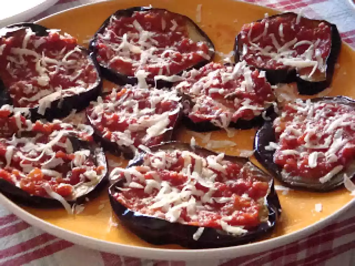 Melanzane fritte al pomodoro e grana Portata principalefacile30 min83 Kcal Invia questa ricetta ad un amico Stampa la ricetta Contatta l'autore della Ricetta Pubblica la foto di questa ricetta Ingredienti 4 2 melanzane salsa di pomodoro aromatizzata con basilico fresco parmigiano olio extravergine di oliva Costo stimato: 1.46Euros€ (0.36€/Porzioni)