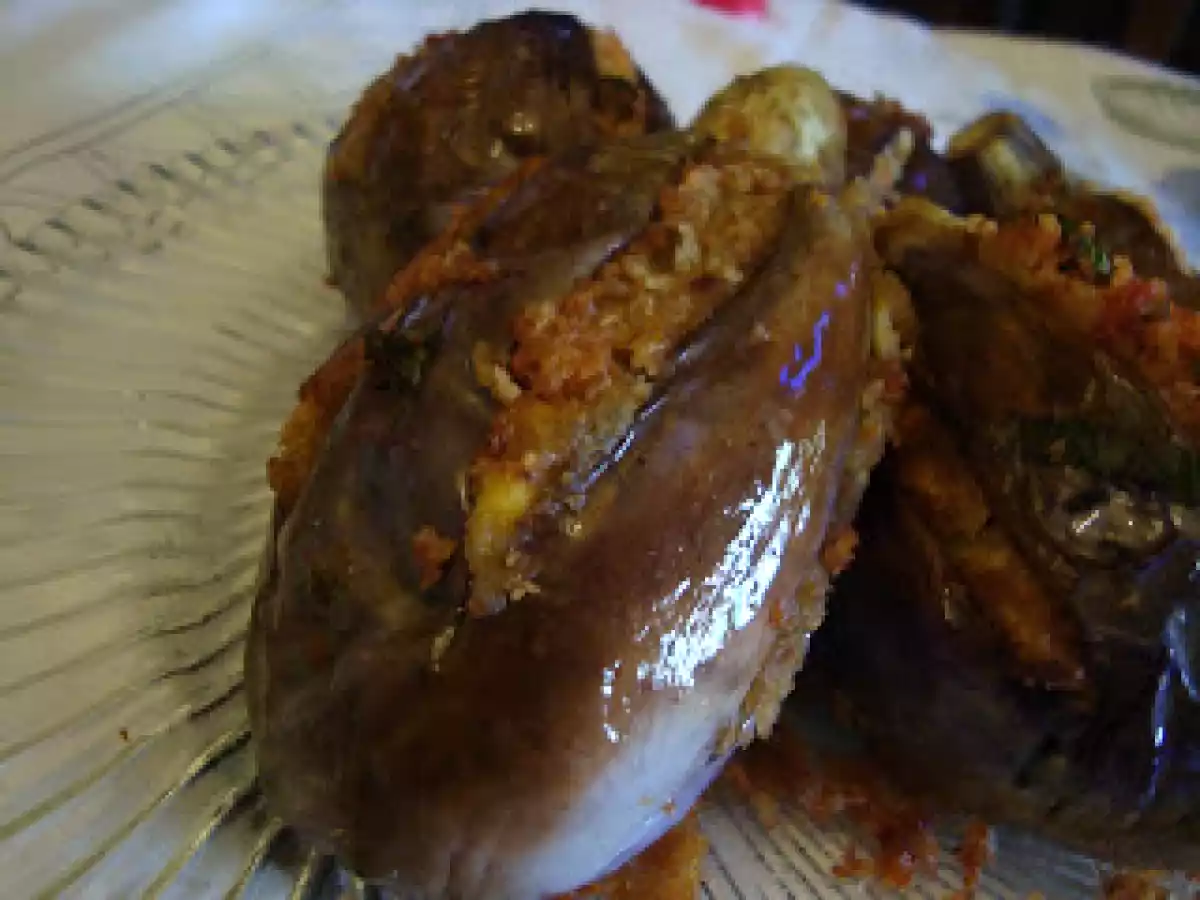 Melanzane "maritate" vota adesso PrecedenteProssimo Portata principalefacile45 min986 Kcal Invia questa ricetta ad un amico Stampa la ricetta Contatta l'autore della Ricetta Pubblica la foto di questa ricetta Ingredienti 1 melanzane provola grattugiata salame piccante sale uovo sodo parmigiano grattugiato pane grattugiato fresco prezzemolo e aglio tritati olio per friggere Costo stimato: 2.97Euros€ (2.97€/Porzioni)