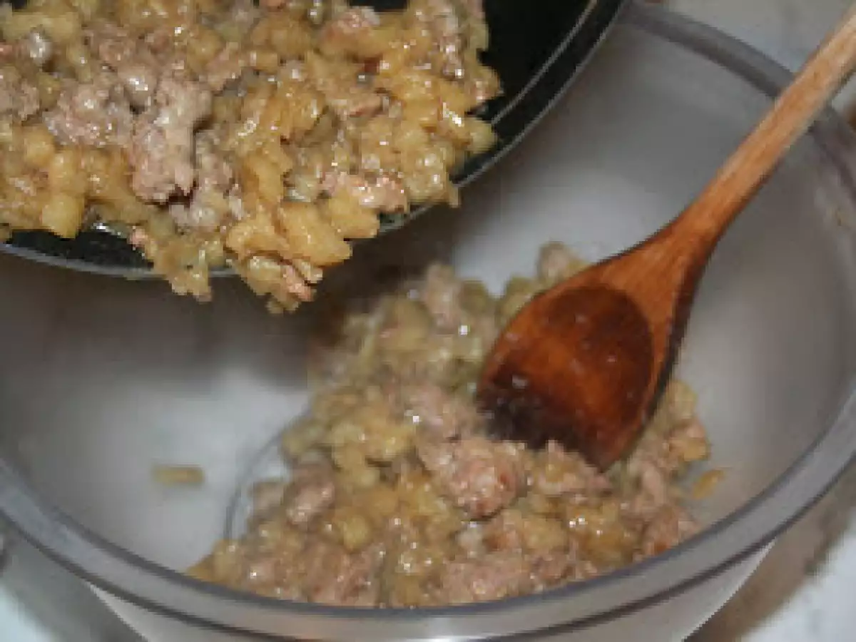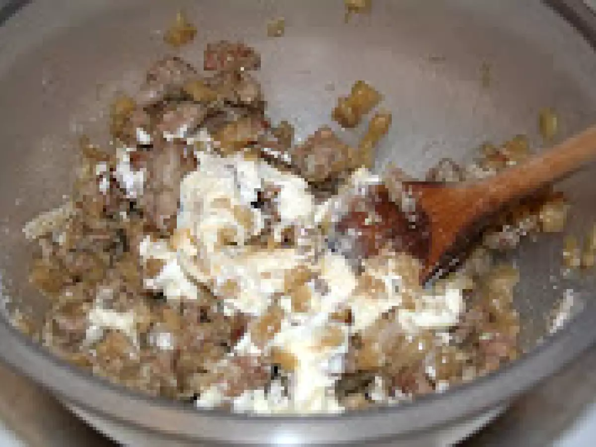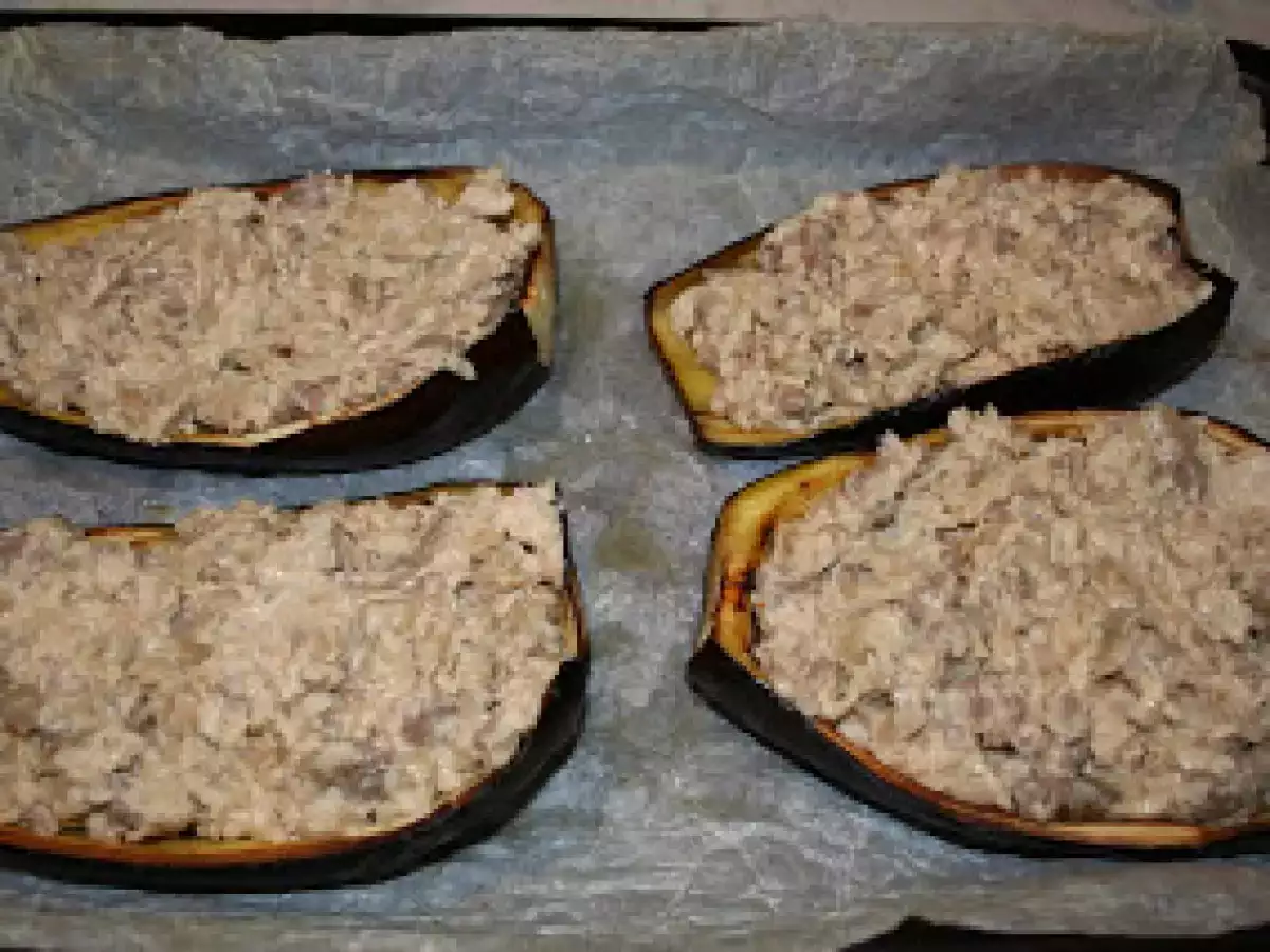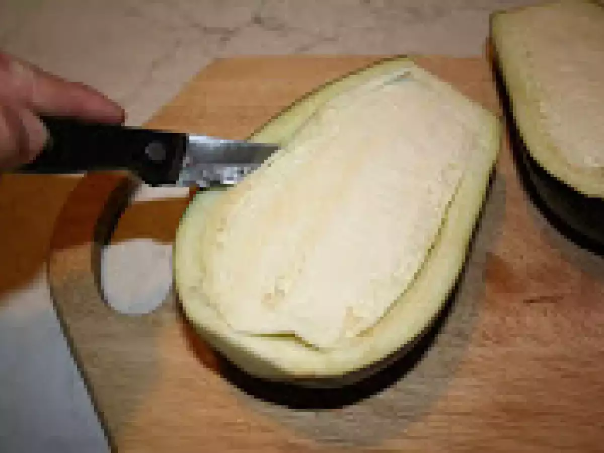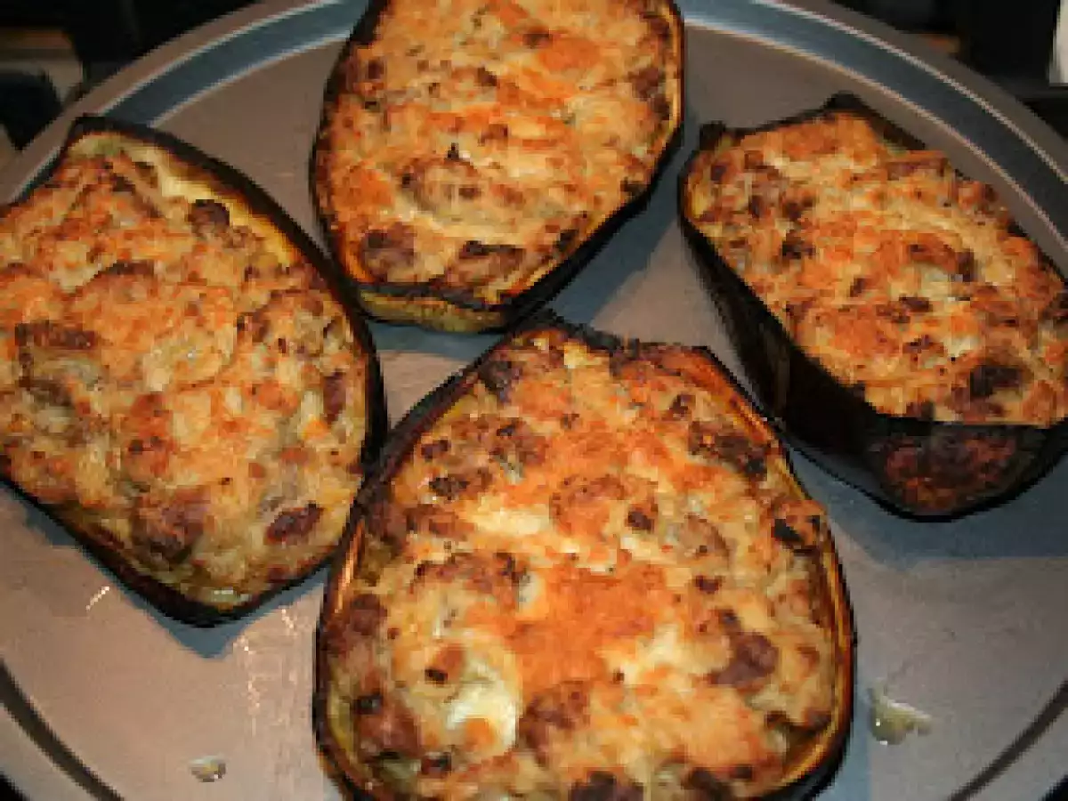 Melanzane ripiene PrecedenteProssimo Portata principalefacile1 h 10 m285 Kcal Invia questa ricetta ad un amico Stampa la ricetta Contatta l'autore della Ricetta Pubblica la foto di questa ricetta Un'ottima ricetta per preparare le melanzane ripiene a casa Ingredienti 4 2 melanzane salsiccia philadelphia parmigiano grattugiato pangrattato aglio olio vino bianco Costo stimato: 3.52Euros€ (0.88€/Porzioni)