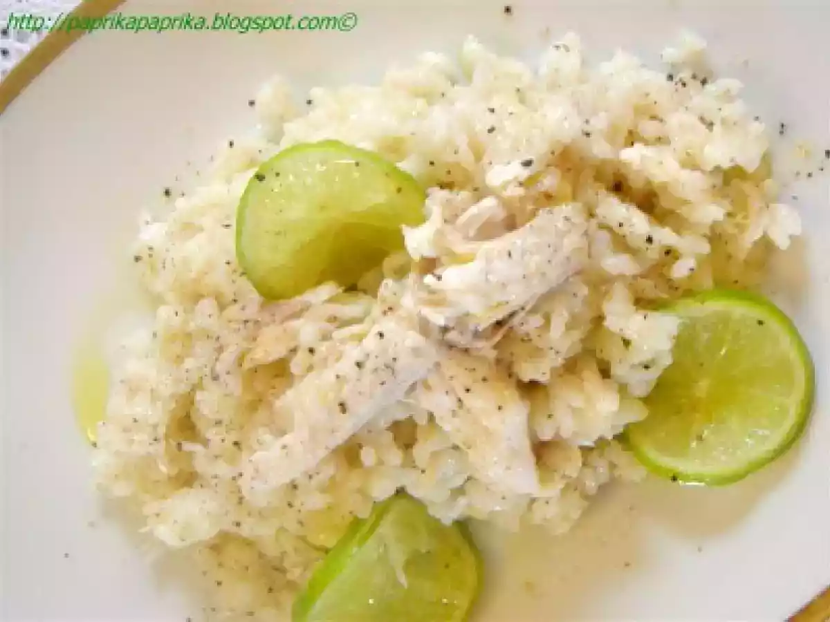 Menu di natale : risotto al branzino e lime vota adesso PrecedenteProssimo Portata principalefacile50 min Invia questa ricetta ad un amico Stampa la ricetta Contatta l'autore della Ricetta Pubblica la foto di questa ricetta Ingredienti 3 300 g Riso vialone nano 1 grosso branzino 1,5 l di court bouillon 3-4 lime 1 scalogno olio d'oliva extravergine sale, pepe