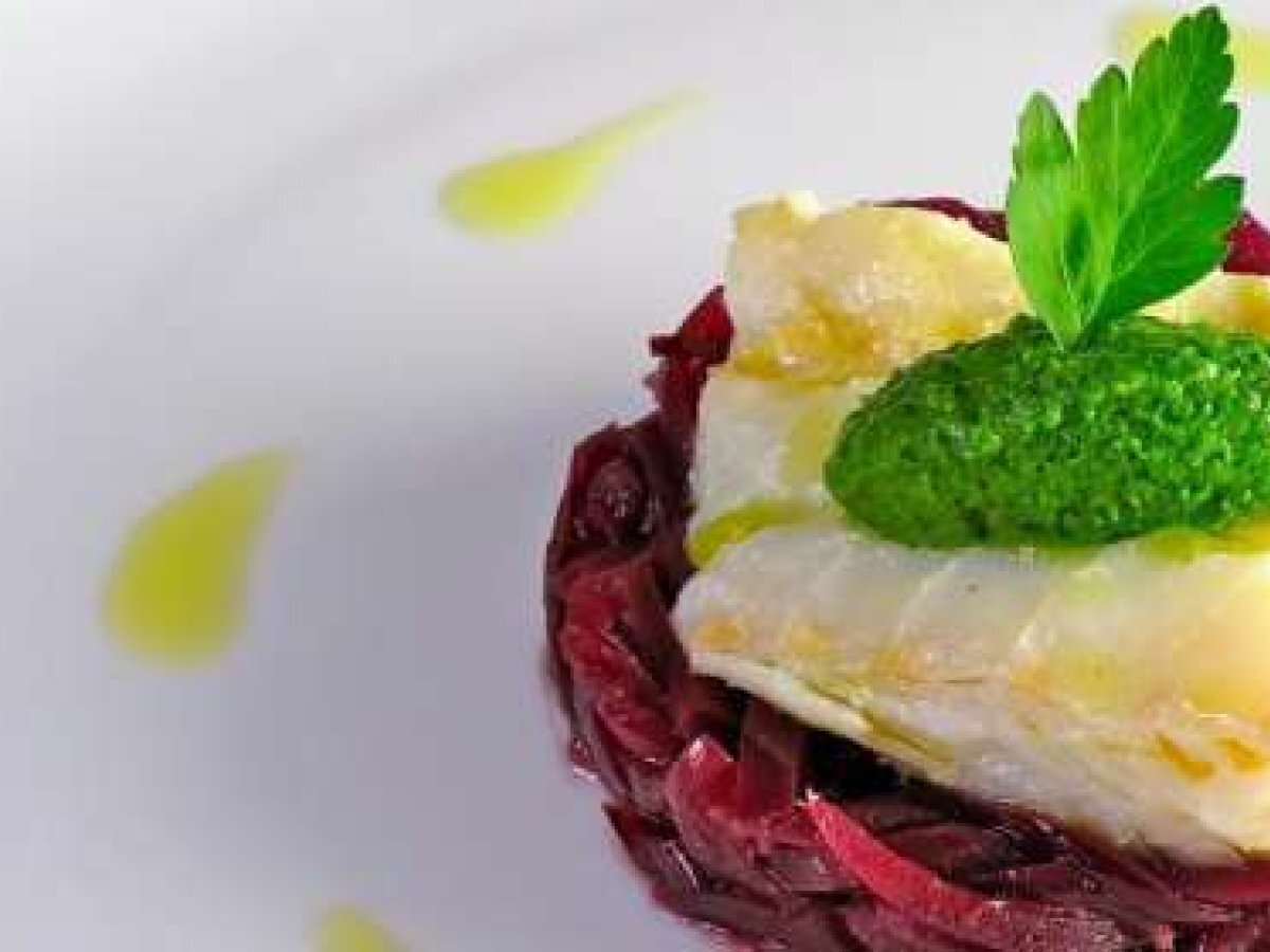 Merluzzo al vapore con confettura di cipolle rosse di tropea