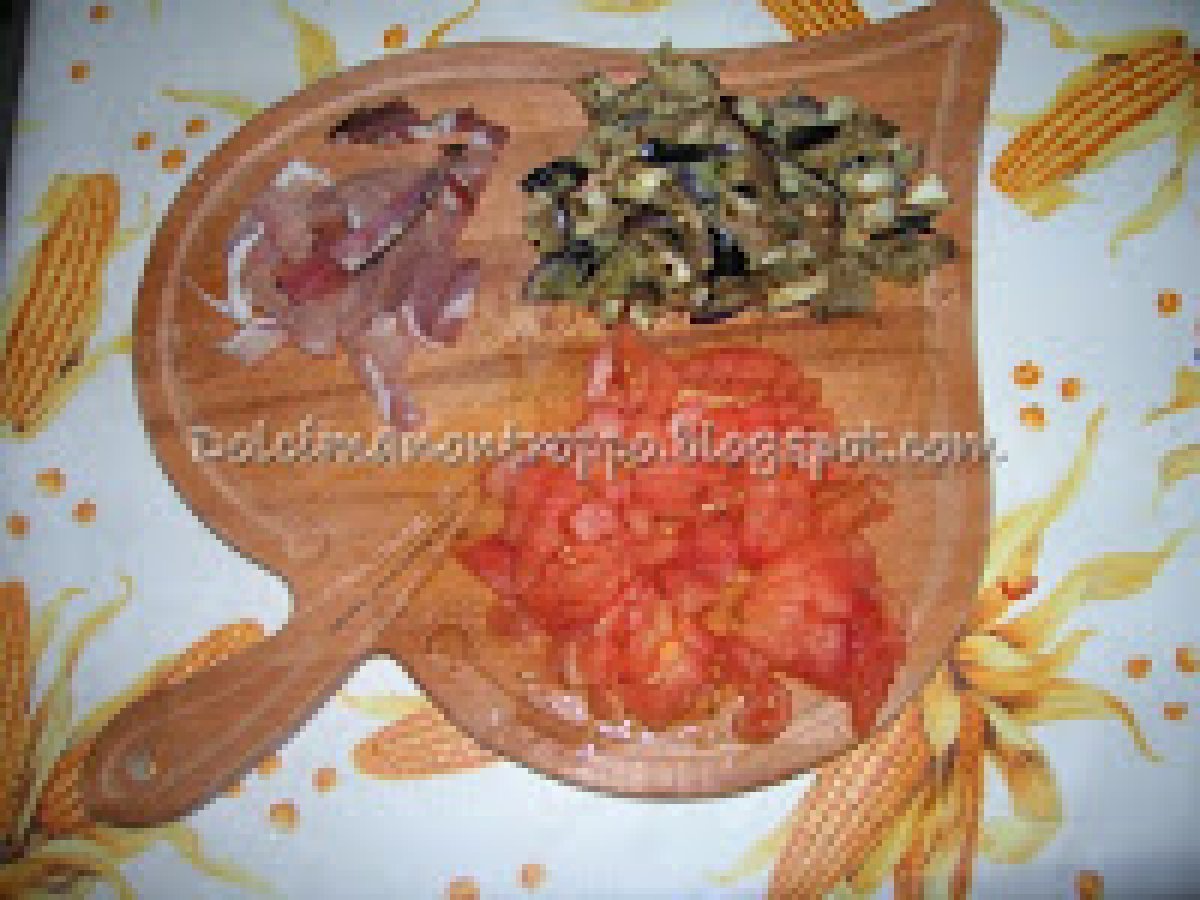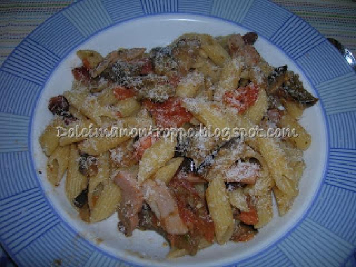 Mezze penne speck e melanzane PrecedenteProssimo Portata principalefacile34 min Invia questa ricetta ad un amico Stampa la ricetta Contatta l'autore della Ricetta Pubblica la foto di questa ricetta Ingredienti 2 130 g di mezze penne 1 melanzana viola 2 fette di speck tagliato a listarelle 1 manciatina di pinoli 2 pomodori freschi e maturi origano sale e pepe