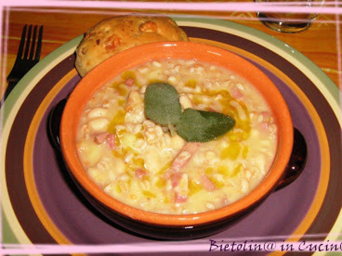 Minestra di farro allo speck con patate e fagioli cannellini Portata principalefacile35 min350 Kcal Invia questa ricetta ad un amico Stampa la ricetta Contatta l'autore della Ricetta Pubblica la foto di questa ricetta Ingredienti 4 180 g di farro perlato 100 g di speck a listarelle 1 carota 1 porro 2 patate medie 200 g di fagioli cannellini di brodo vegetale 2 cucchiai di olio evo salvia sale pepe