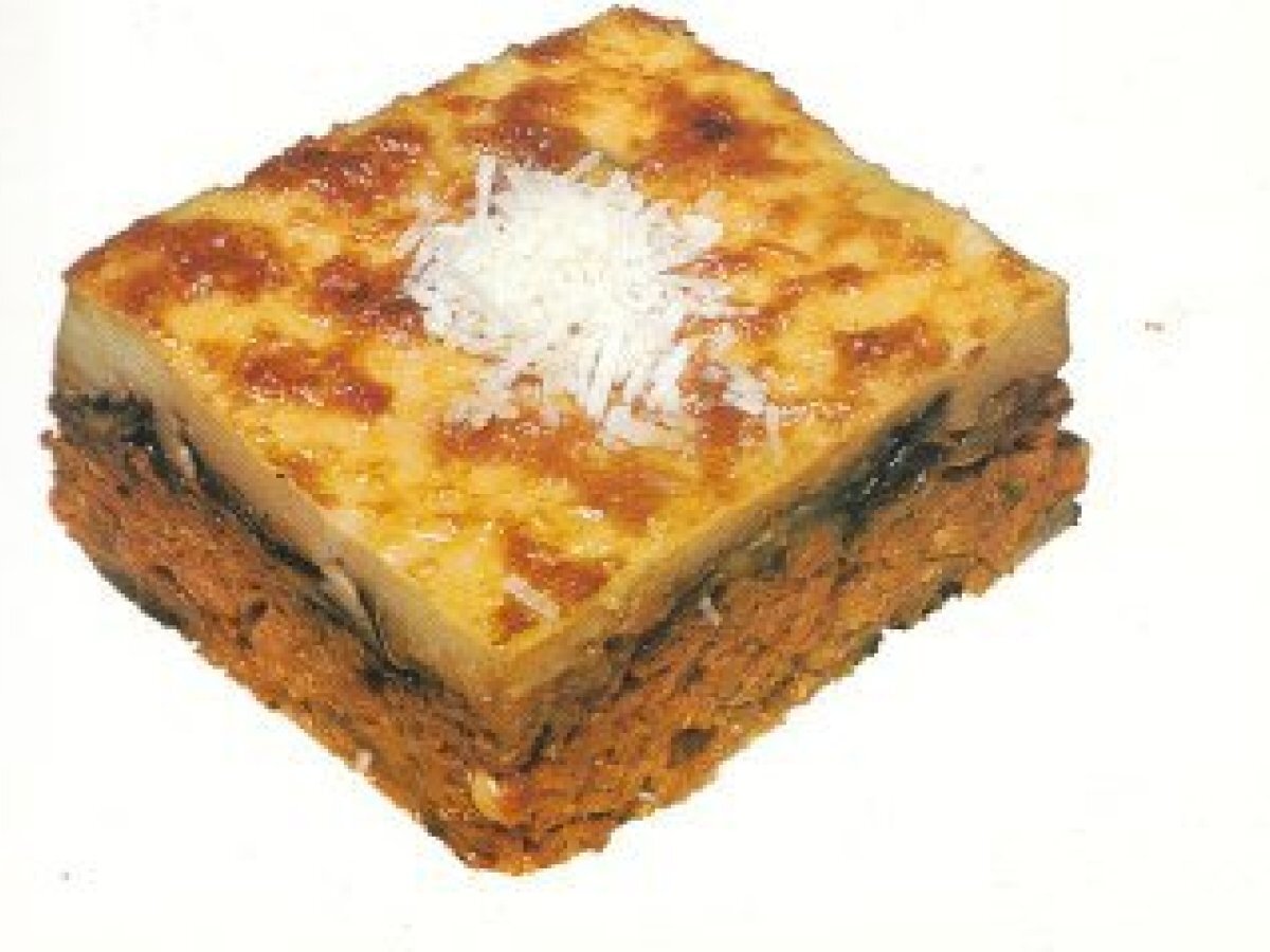 Mousaka sformato di melanzane e besciamella Portata principalefacile55 min Invia questa ricetta ad un amico Stampa la ricetta Contatta l'autore della Ricetta Pubblica la foto di questa ricetta Ingredienti 2 per moussaka : 4- 5 melanzane 1/2 kg di carne tritata 2-3 pomodori 1 tazza di olio 2 cipolle tritate 1 foglia di alloro 1 spicchio di aglio olio per friggere 1/2 tazza di parmigiano 3 tazze di besciamella per besciamella : 1 tazza di farina 2 tazze di latte 1 tazza diolio 2 uova 1 tazza di formaggio grattugiato sale pepe noce moscata