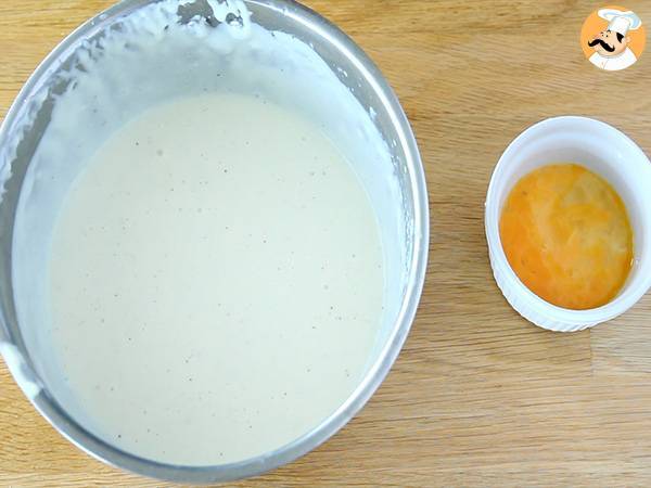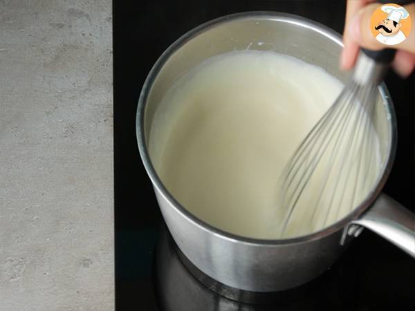 Incorporate il latte poco alla volta, mescolando con l'aiuto di una frusta. Continuate a mescolare fin quando il composto si addensa.