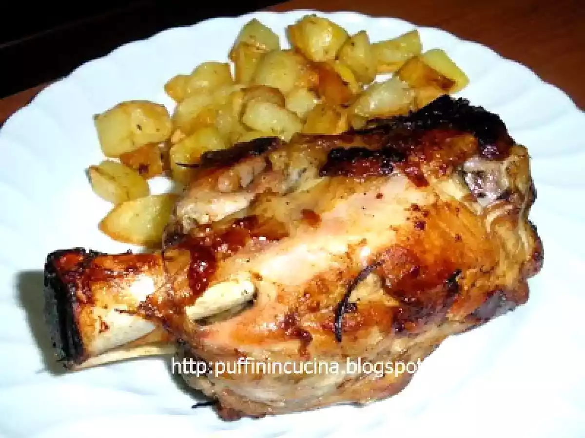Novembre...e lo stinco di maiale al forno con patate vota adesso PrecedenteProssimo Portata principalefacile1 ora588 Kcal Invia questa ricetta ad un amico Stampa la ricetta Contatta l'autore della Ricetta Pubblica la foto di questa ricetta Ingredienti 2 2 stinchi di maiale 1 carota 1 cipolla 1 cipolla 1 gambo di sedano qualche foglia di alloro un rametto di rosmarino timo 1 spicchio d'aglio prezzemolo sale e pepe vino bianco brodo