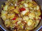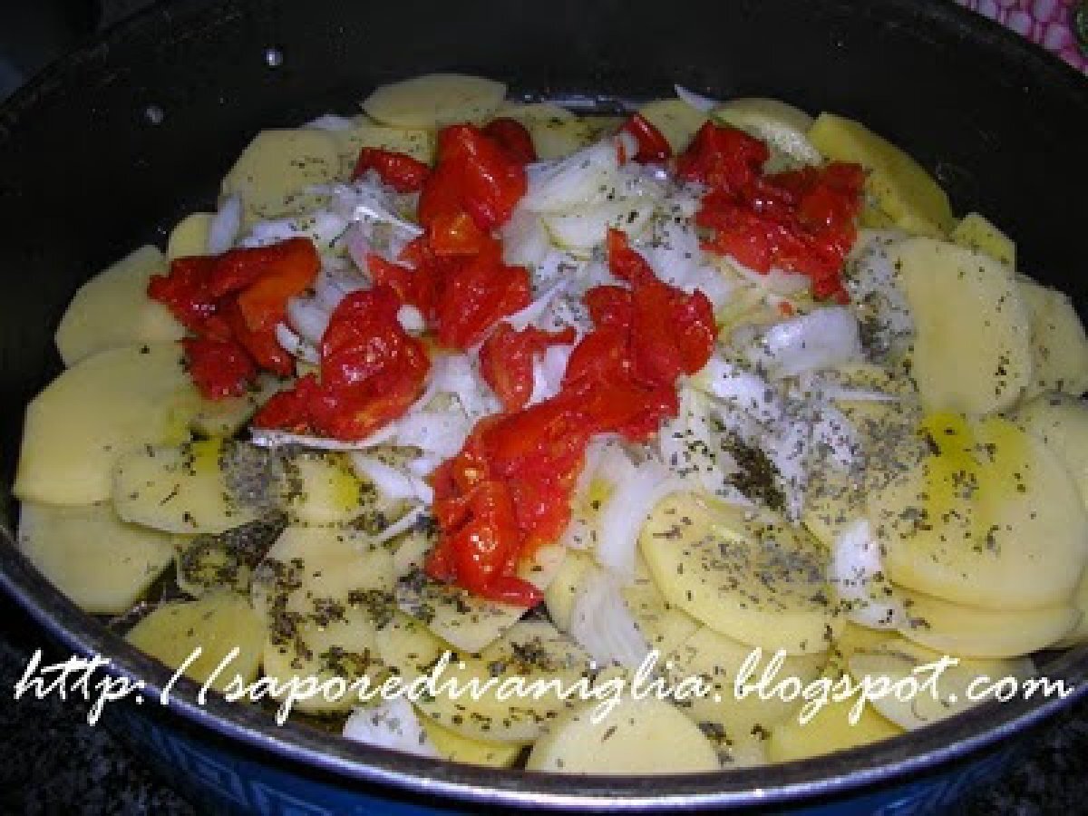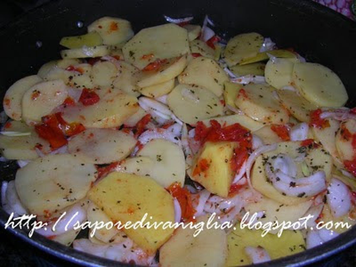 "o ruot' e patan" (tegame di patate) PrecedenteProssimo Portata principalefacile1 h 30 m42 Kcal Invia questa ricetta ad un amico Stampa la ricetta Contatta l'autore della Ricetta Pubblica la foto di questa ricetta Ingredienti 4 1,500 g di patate 2/3 cipolle medie 10 pomodorini del piennolo o in alternativa un qualsiasi pomodorino fresco sale e pepe qb. origano olio evo Costo stimato: 0.79Euros€ (0.2€/Porzioni)