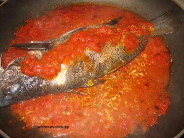 - Unire il pesce e farlo andare a fuoco dolce rigirando a metà cottura.Il sughetto deve rimanere ristretto.