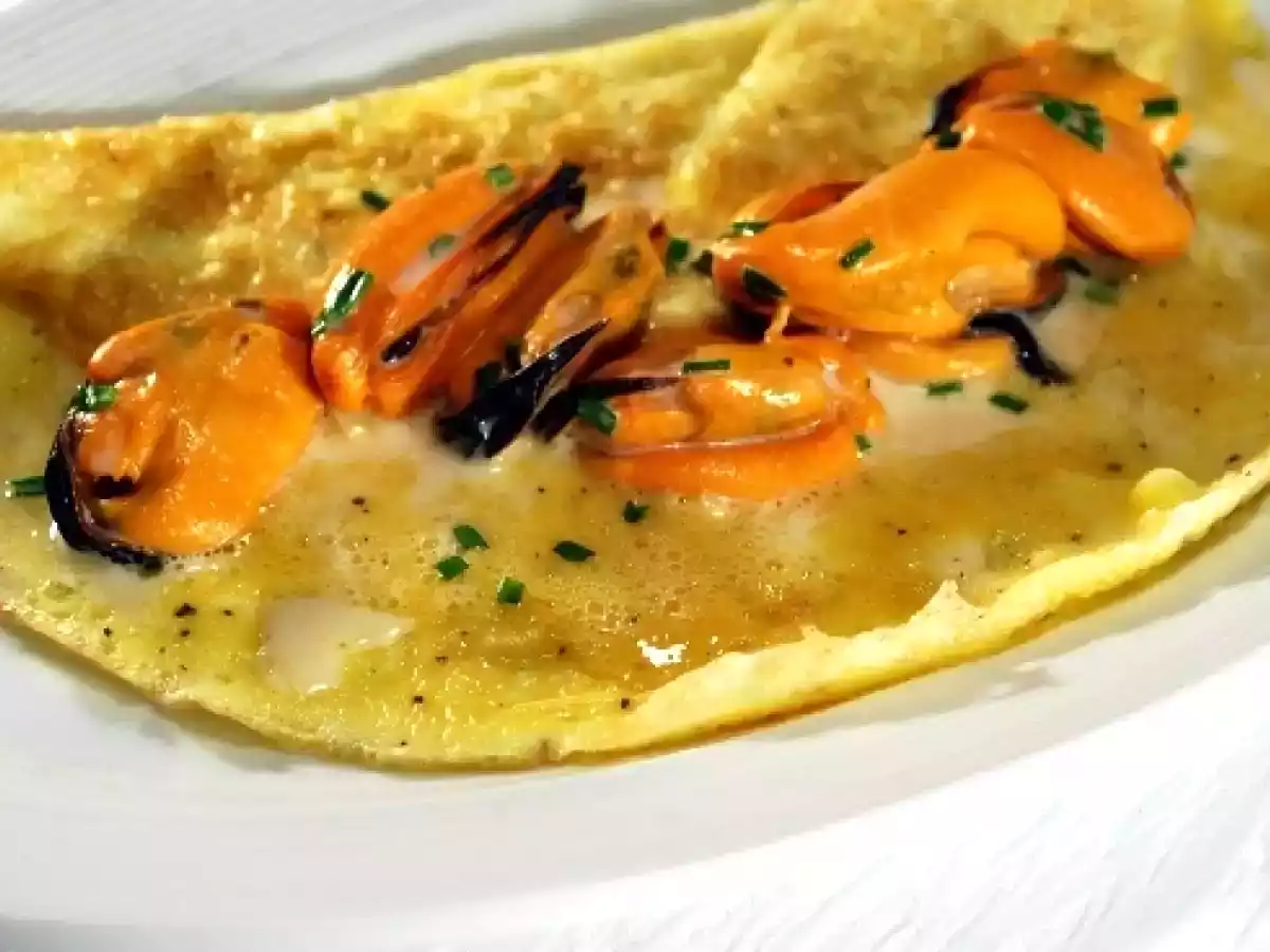 Omelette con cozze ed erba cipollina