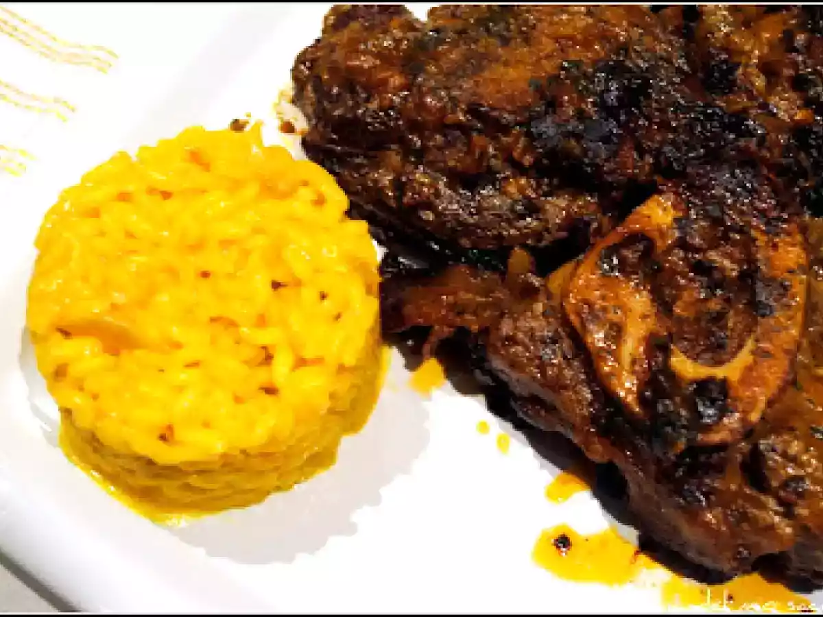 Ossibuchi alla milanese con risotto allo zafferano Portata principalefacile55 min Invia questa ricetta ad un amico Stampa la ricetta Contatta l'autore della Ricetta Pubblica la foto di questa ricetta Ingredienti 2 1) 2 ossibuchi di vitello spessi almeno 3 centimetri mezza cipolla tritata fine olio evo una noce di burro 2 cm di concentrato di pomodoro mezzo bicchiere di vino bianco brodo di carne sale e pepe scorza grattugiata di limone non trattato prezzemolo fresco tritato acciughe dissalate e diliscate aglio 2) mezzo bicchiere di Riso Carnaroli Margara olio evo uno spicchio di cipolla tritata brodo di carne una bustina di zafferano poco parmigiano