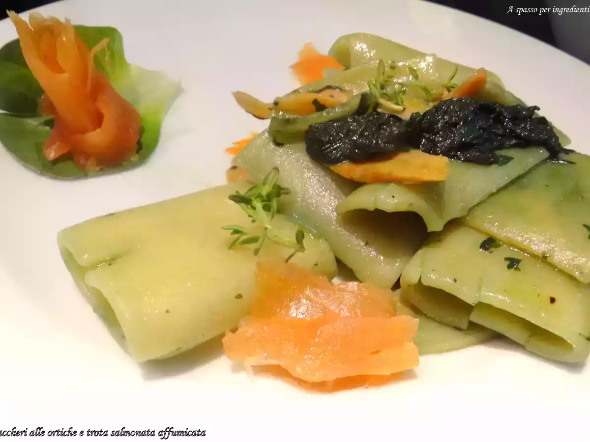 Paccheri alle ortiche e trota salmonata affumicata