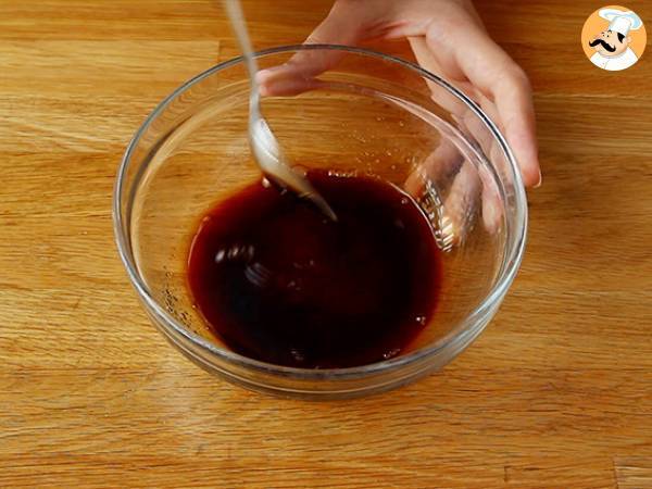 Preparate la salsa: in una ciotola mescolate lo zucchero, la salsa di soia, l'aceto di riso, il succo di lime e la salsa di pesce.