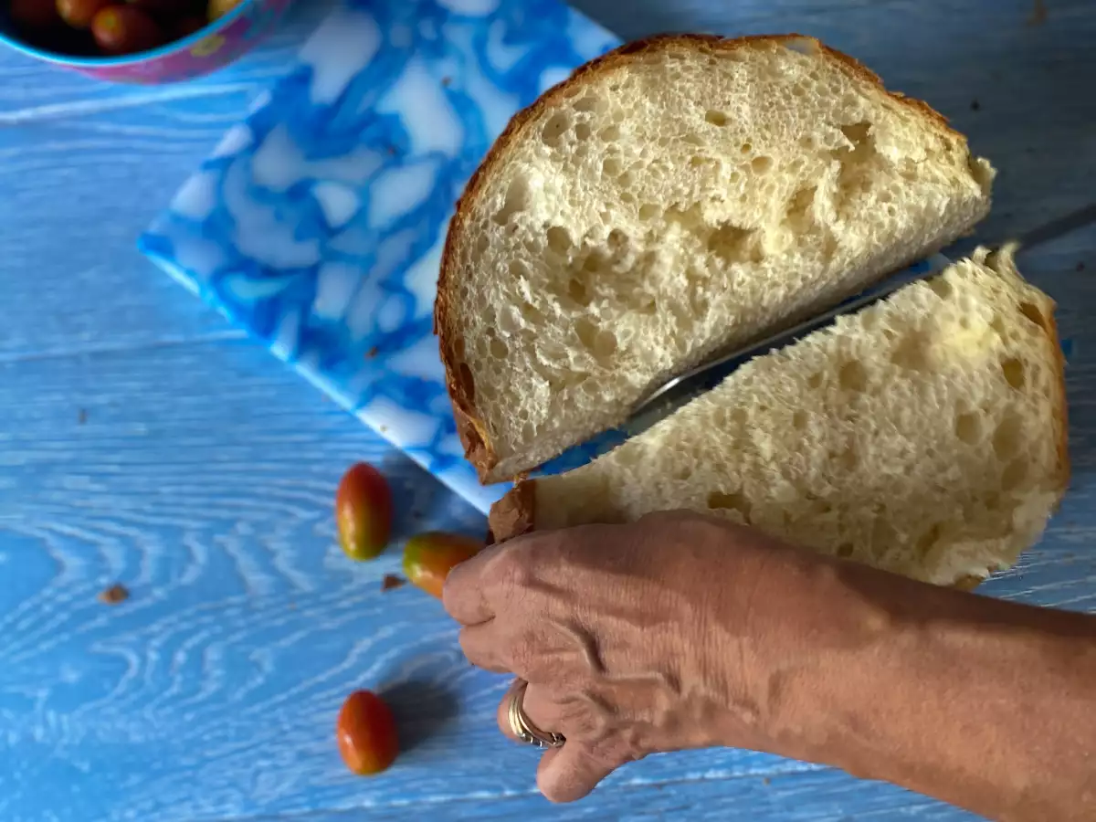Ricavate dalla pagnotta delle fette spesse circa 2 cm. Tagliate a metà uno spicchio d’aglio e strofinatelo sulle fette di pane per insaporirle. Fate scaldare una padella sul fuoco e, quando sarà calda, tostate le fette di pane da entrambi i lati. Quando le fette saranno belle dorate toglietele dal fuoco. - Cunziamo il Pane: