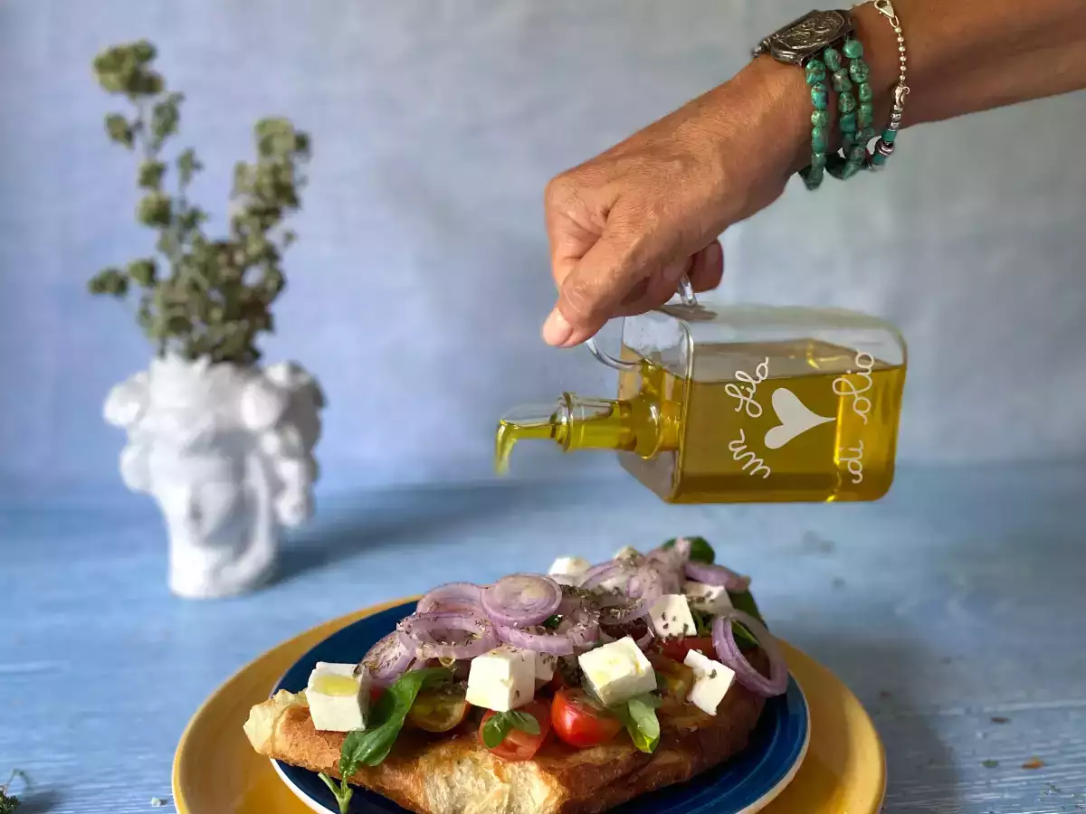 Spalmate sul pane tostato un paté di pomodori secchi, i cubetti di formaggio primosale. Completate il tutto con una cucchiaiata